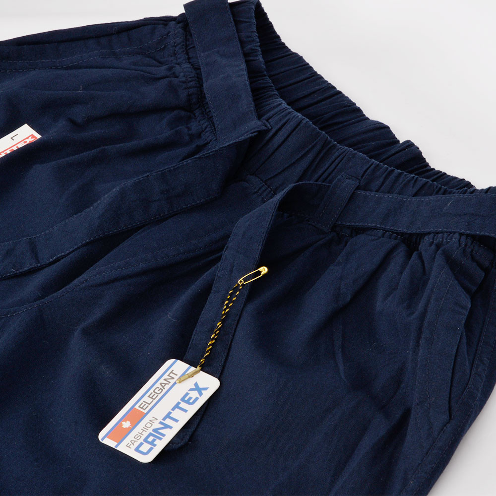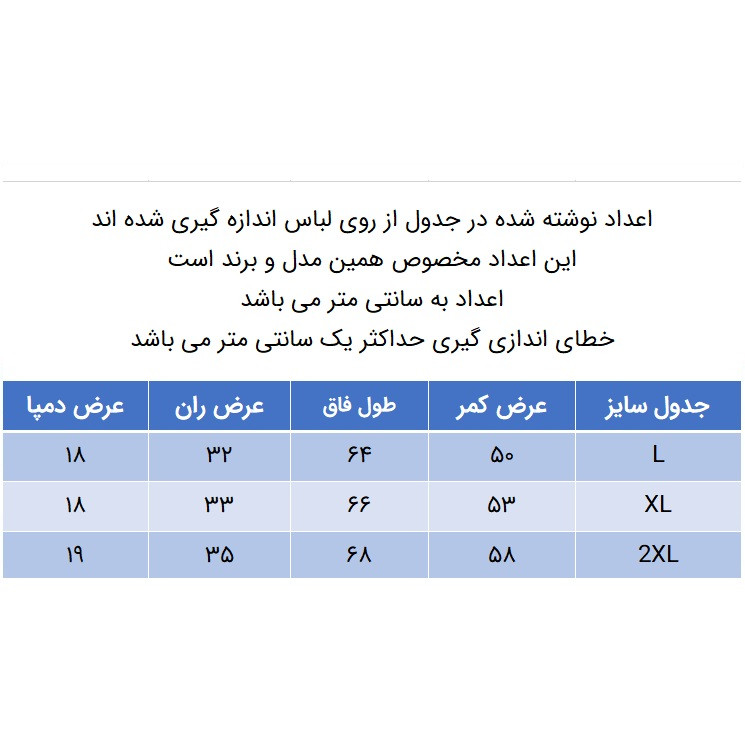 کمر کش 6 سانتی دارای بند - دو جیب در جلو شلوار - فاق بلند - دمپا راسته- قد شلوار 106