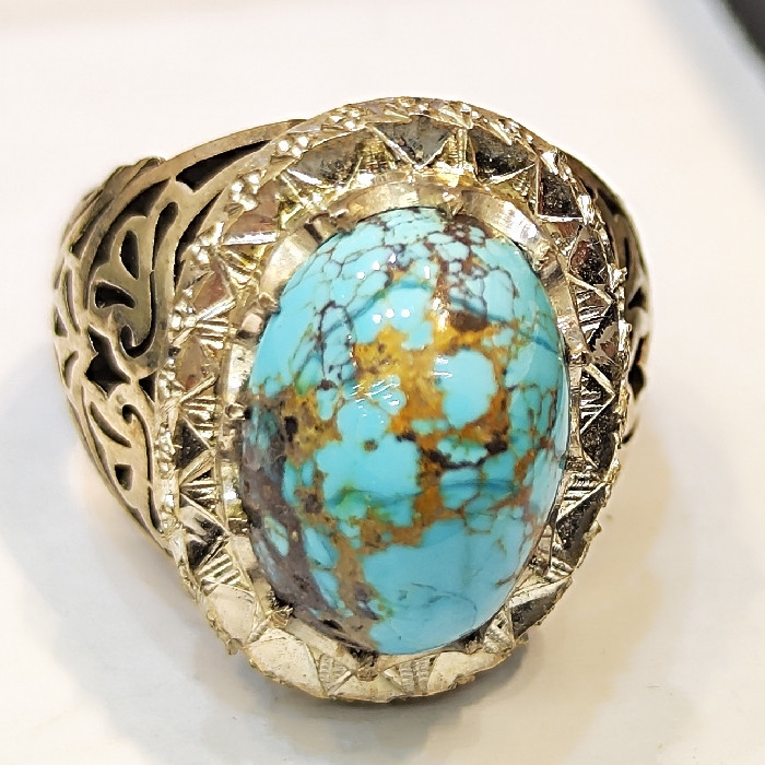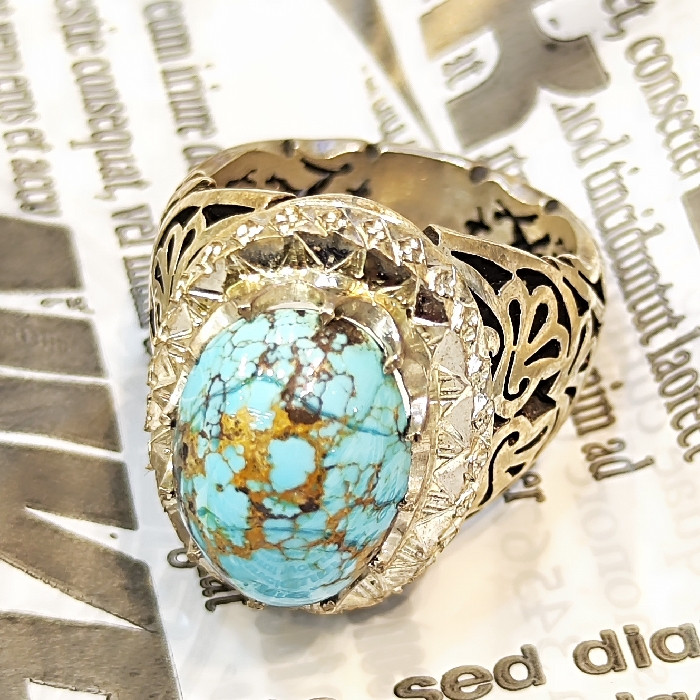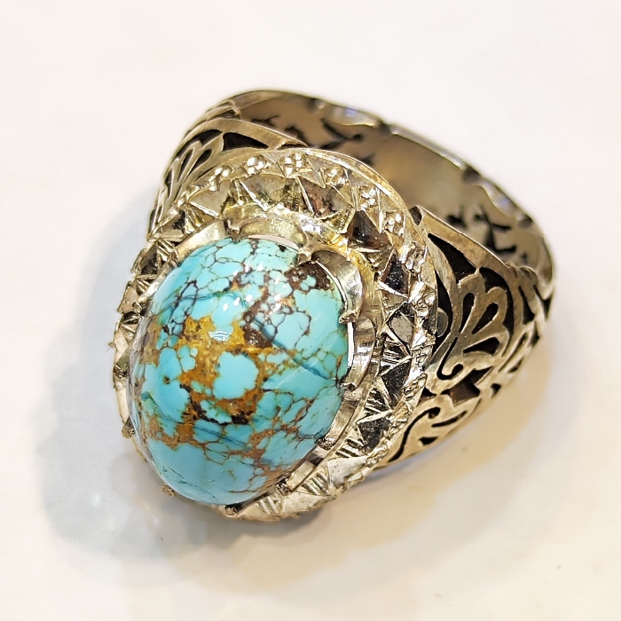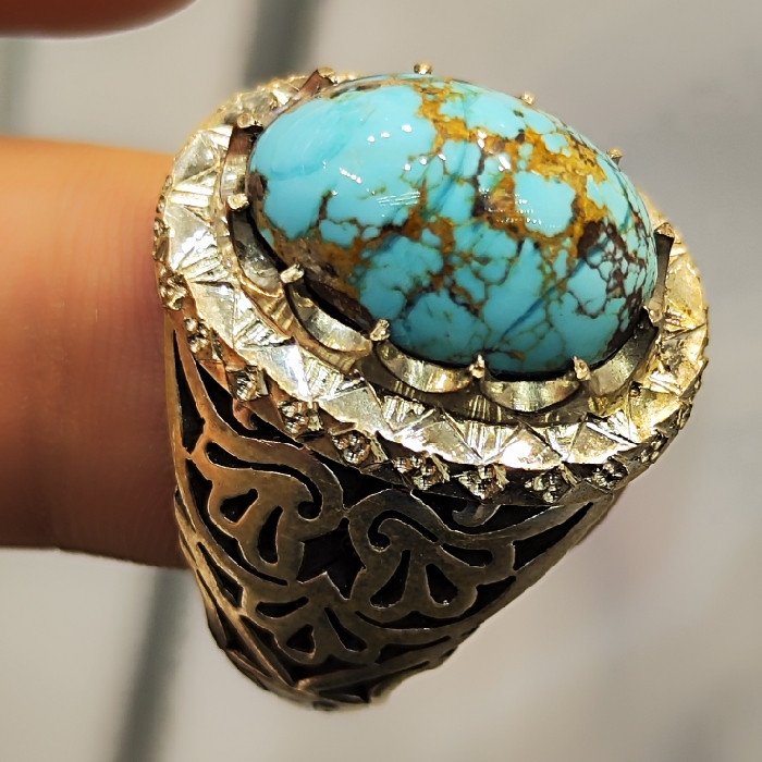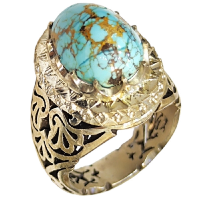 انگشتر نقره مردانه مدل سنگ فیروزه نیشابور رکاب دست ساز کد 5000
