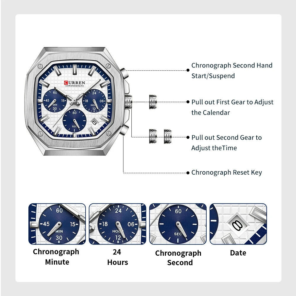 - قابلیتهای تخصصی ساعتعقربههای شبتابتاریخشمارکرنوگرافشیشه ضدخش