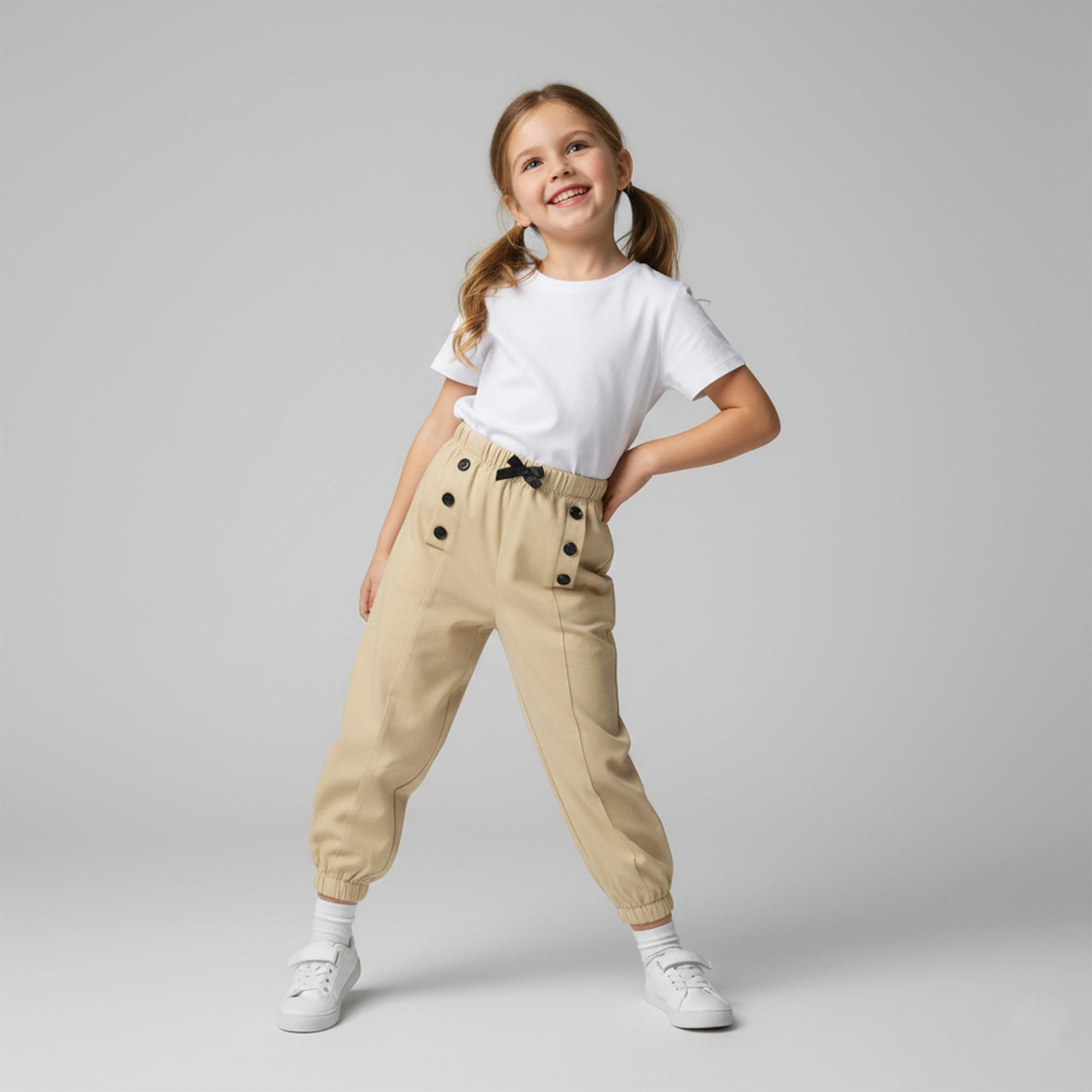 شلوار اسلش دخترانه مادر مدل شیبا رنگ کرم