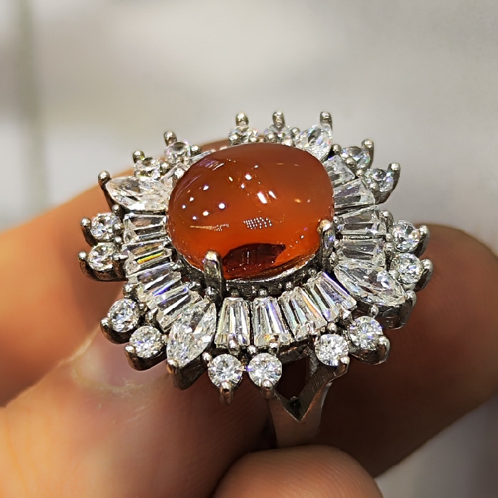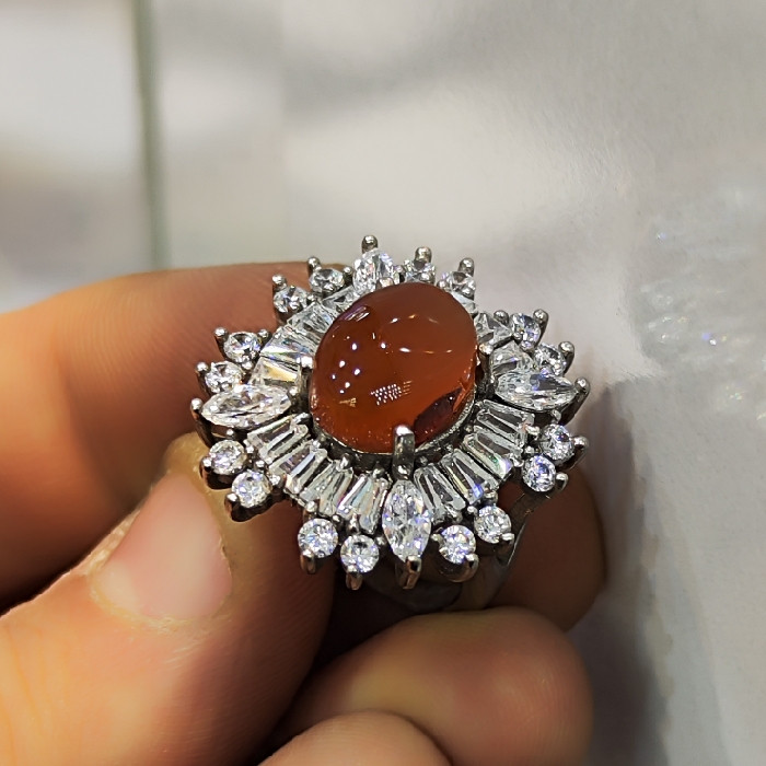 - نوع انگشتر نقره زنانههمراه با سنگ و نگین