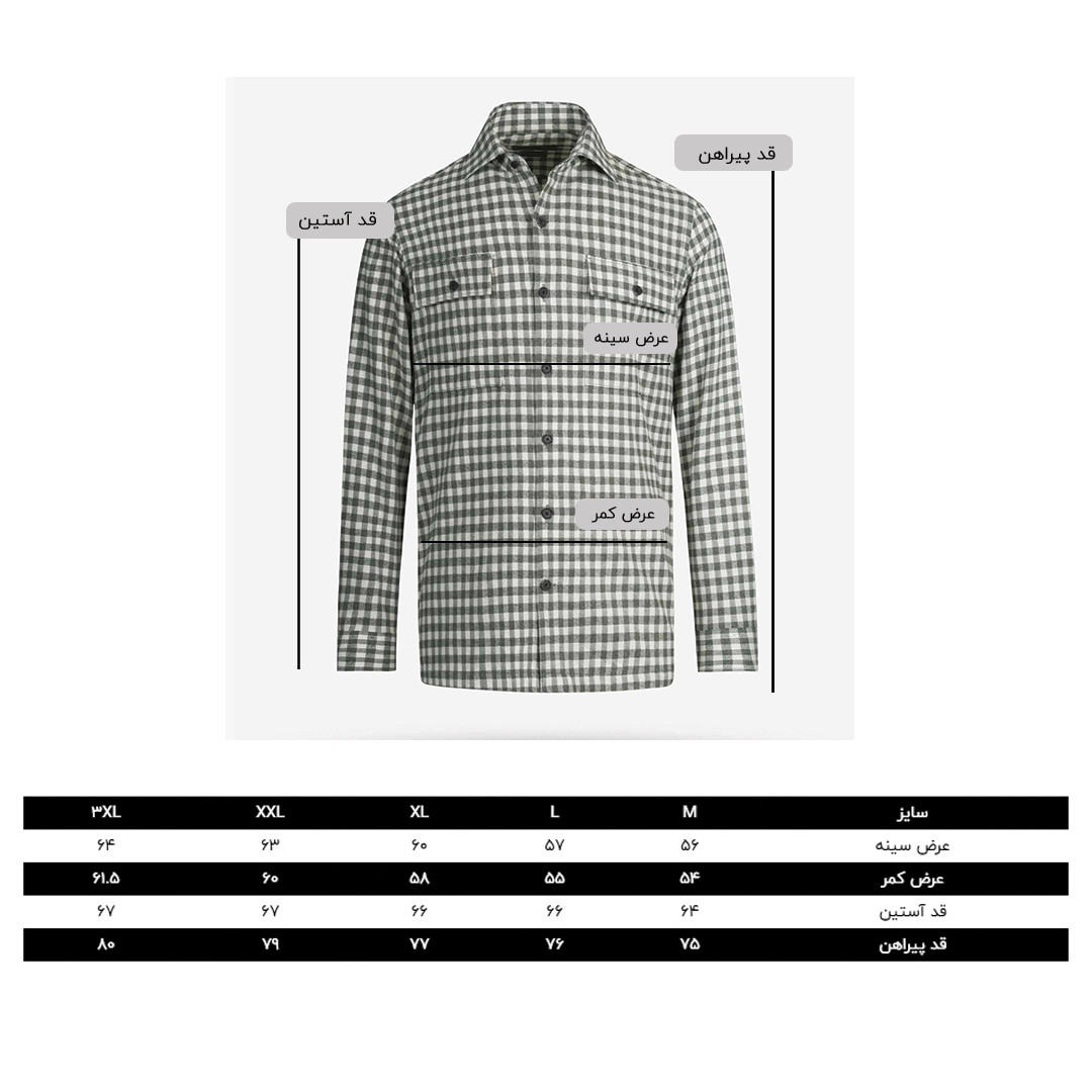 - جزئیاتپیراهن مردانه آستین بلند/پارچه چهارخانه تهیه شده از 100% الیاف پنبه/استایل Comfort-Fit/دارای دو جیب روی سینه/ثبات رنگ در شستشو