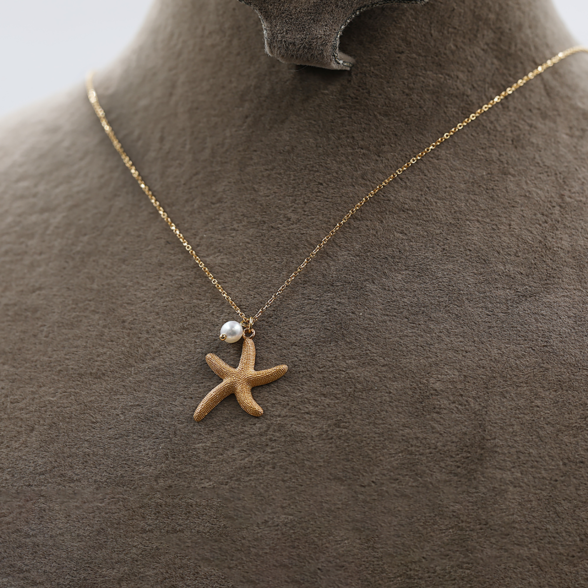 گردنبند طلا با طرح حلقه ای 18 عیار زنانه الی گالری مدل استار فیش و مروارید