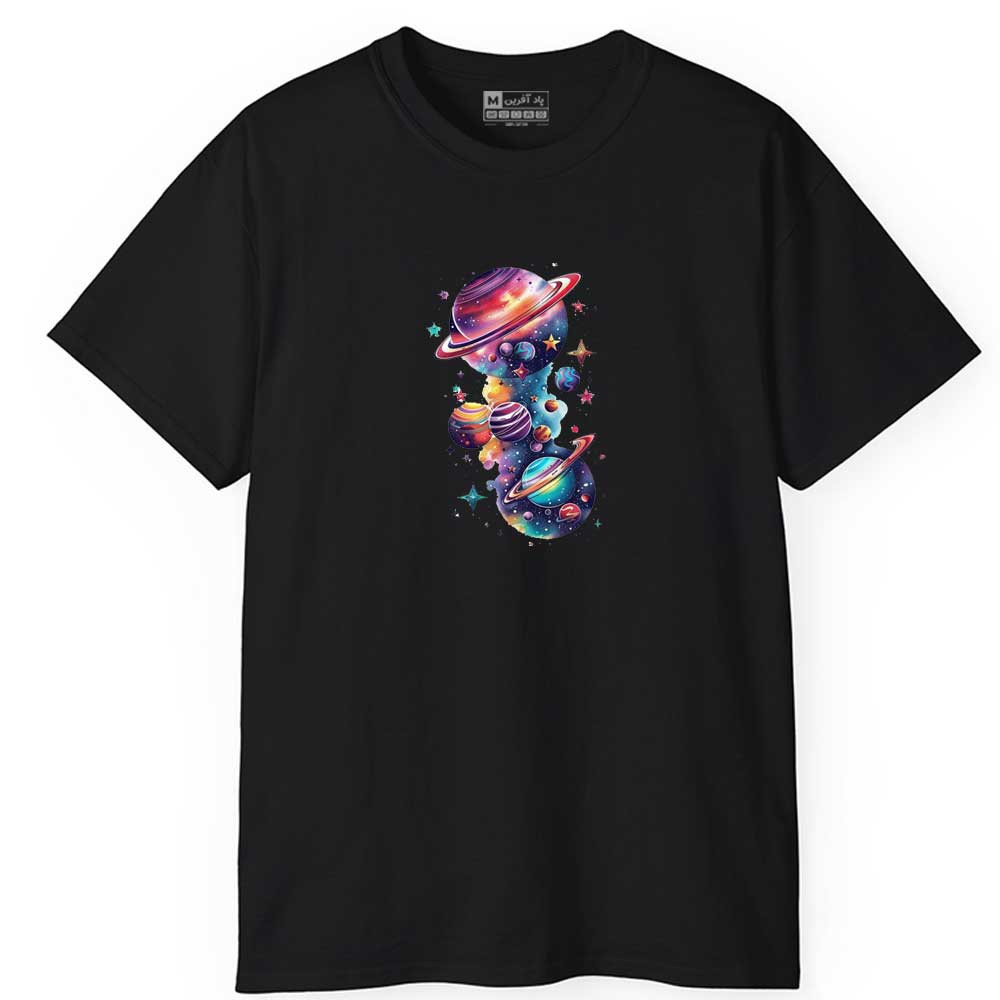 تی شرت آستین کوتاه مردانه پاد آفرین مدل کهکشانی سیاره ها کد 0470