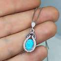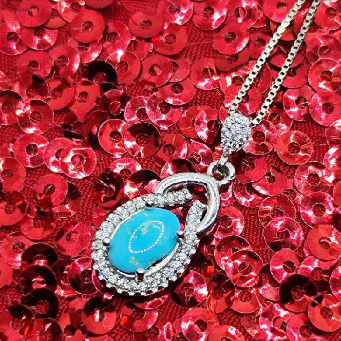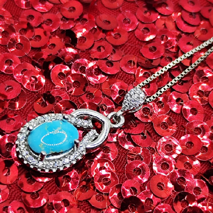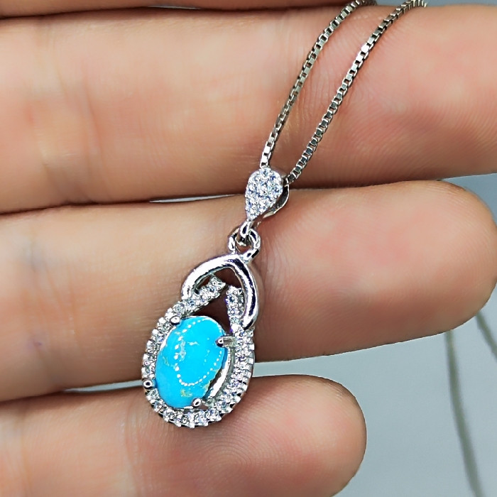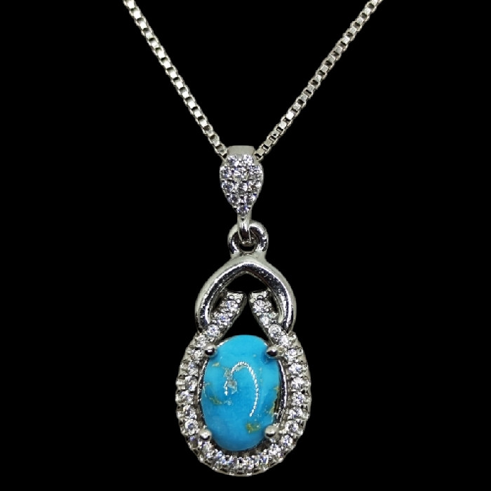 گردنبند نقره زنانه مدل سنگ فیروزه نیشابور آبکاری رادیوم کد 550