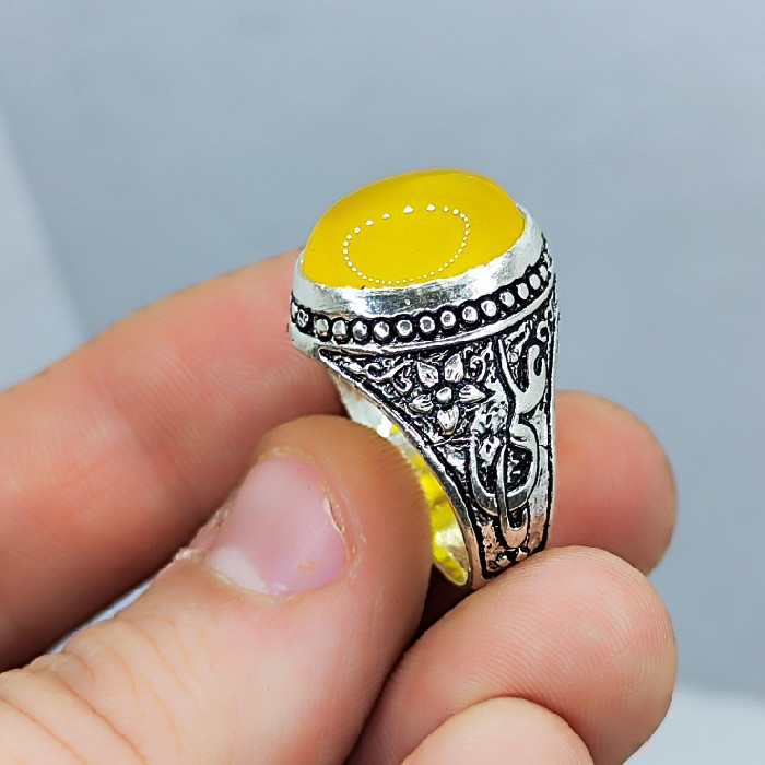 انگشتر نقره مردانه مدل عقیق شرف الشمس رکاب یا علی کد 3500