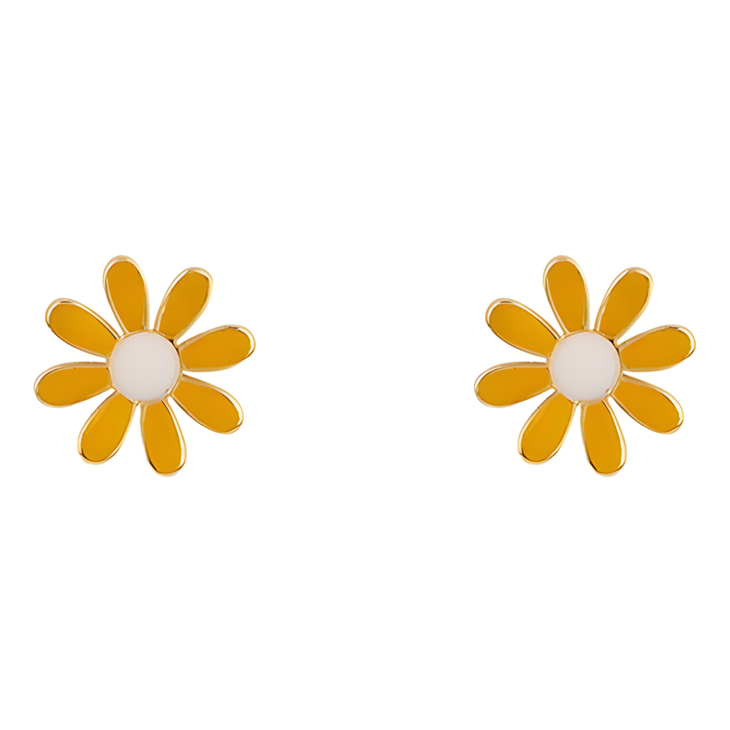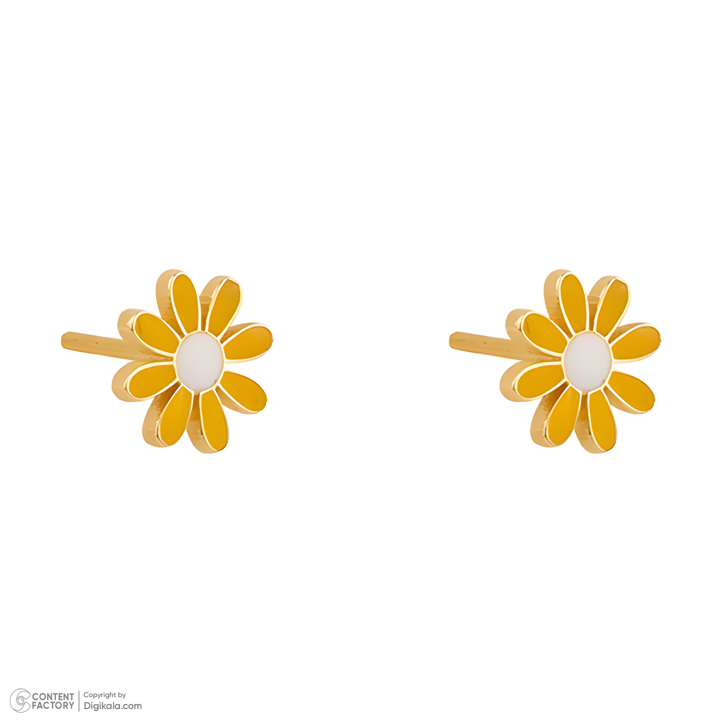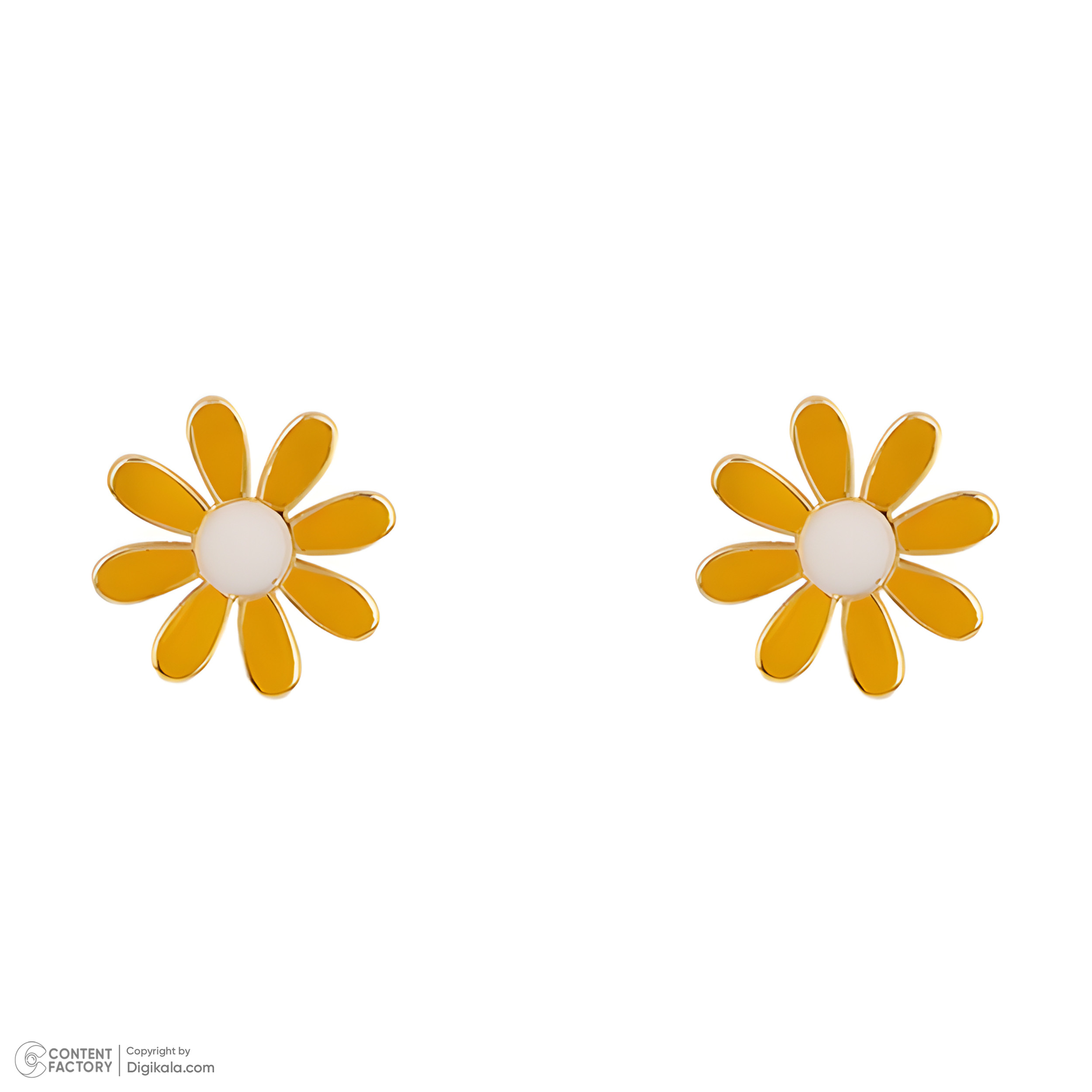گوشواره میخی طلا 18 عیار زنانه کیا گالری مدل بابونه میناکاری کد EM409