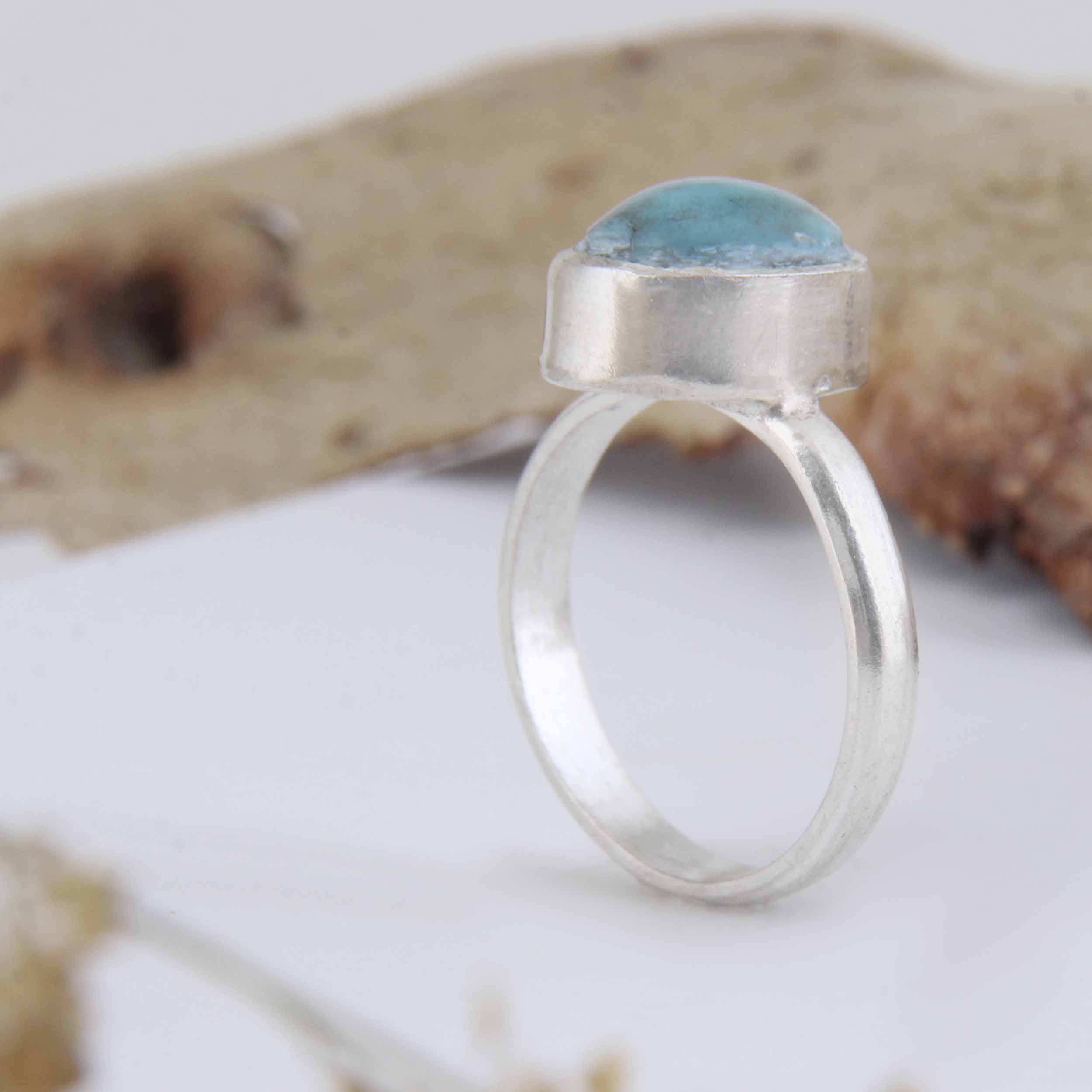 انگشتر نقره زنانه مدل رکاب دست ساز فیروزه نیشابور کد AW_736