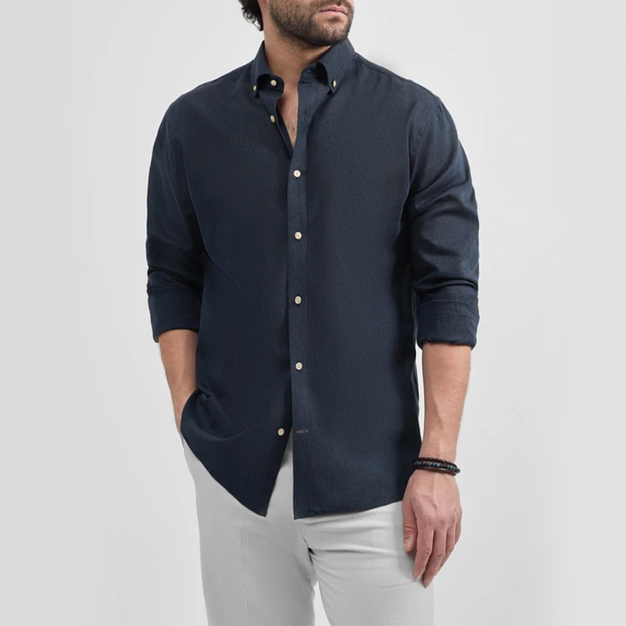 - جزئیاتپیراهن آستین بلند، آستین دو دکمه، یقه دکمه دار، خنک و سبک، ثبات رنگ در شستشو/استایل: Comfort-Fit