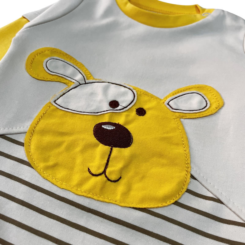 - جزئیاتست لباس دو تیکه شامل یک زیر دکمه آستین بلندو شلوار میباشد. ضمن آنکه جنس پنبهای نرم و لطیف این لباس، راحتی هرچه تمامتر را برای کودک به ارمغان میآورد. یقه بلوز طوری طراحی شده که به راحتی بتوان آن را به کودک بپوشانید.