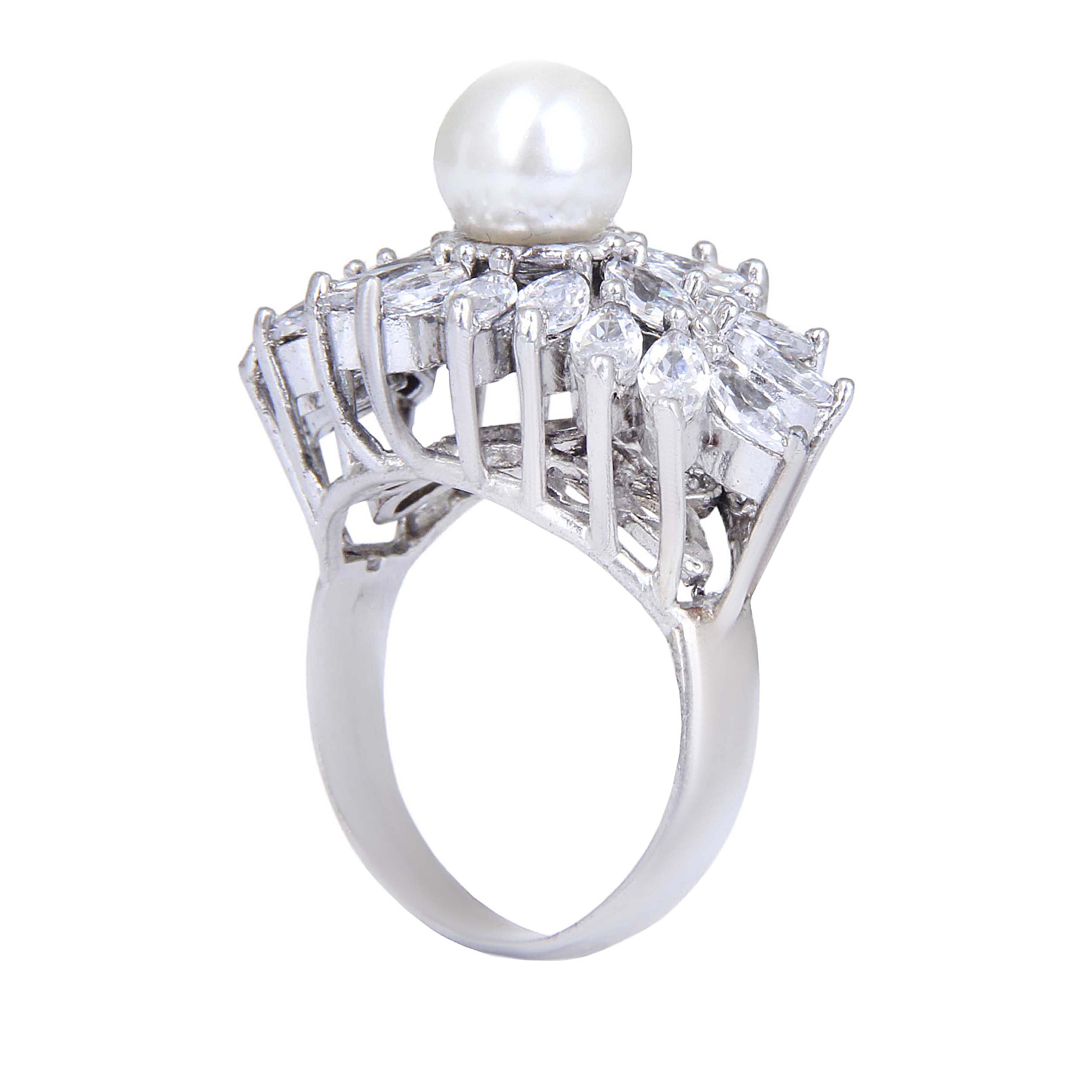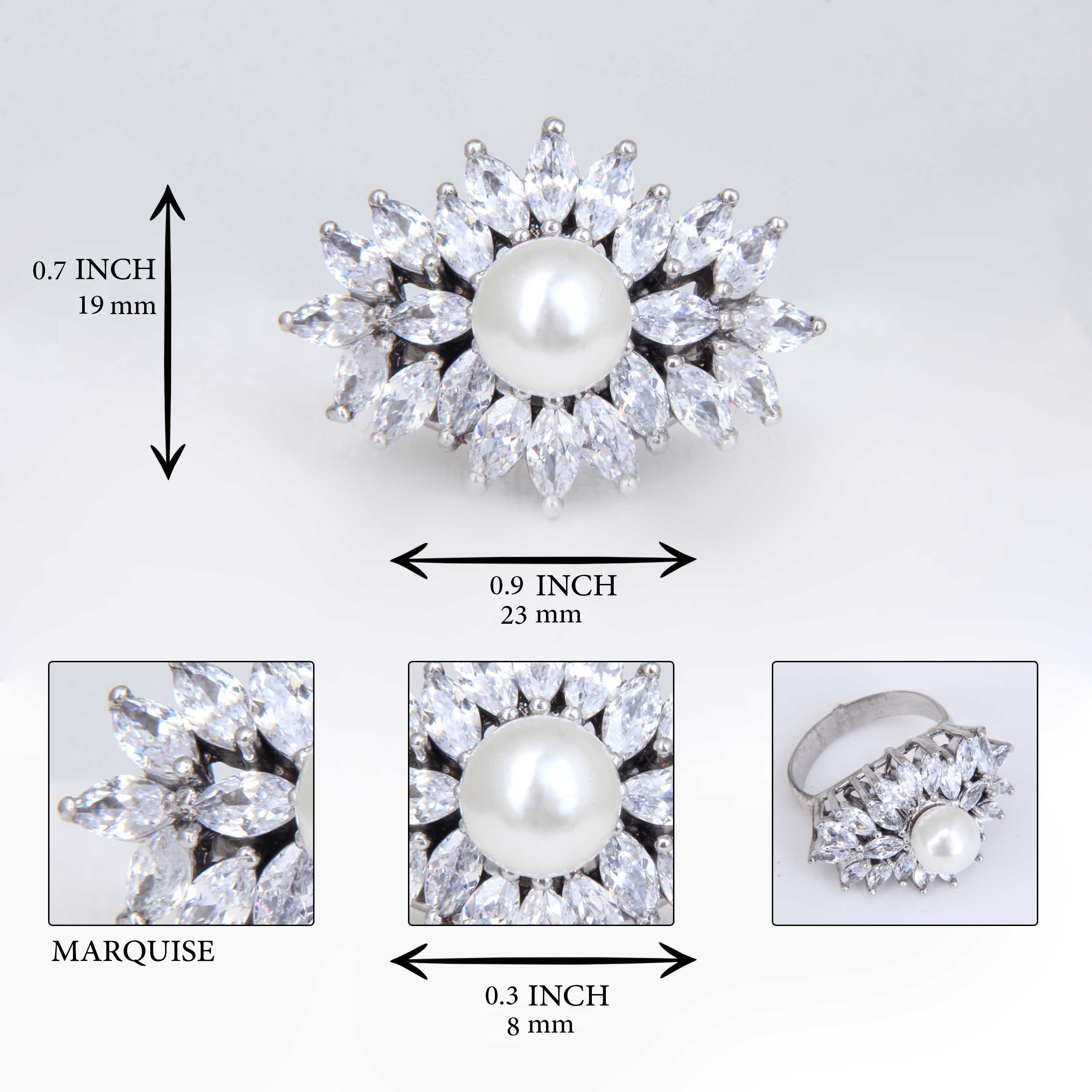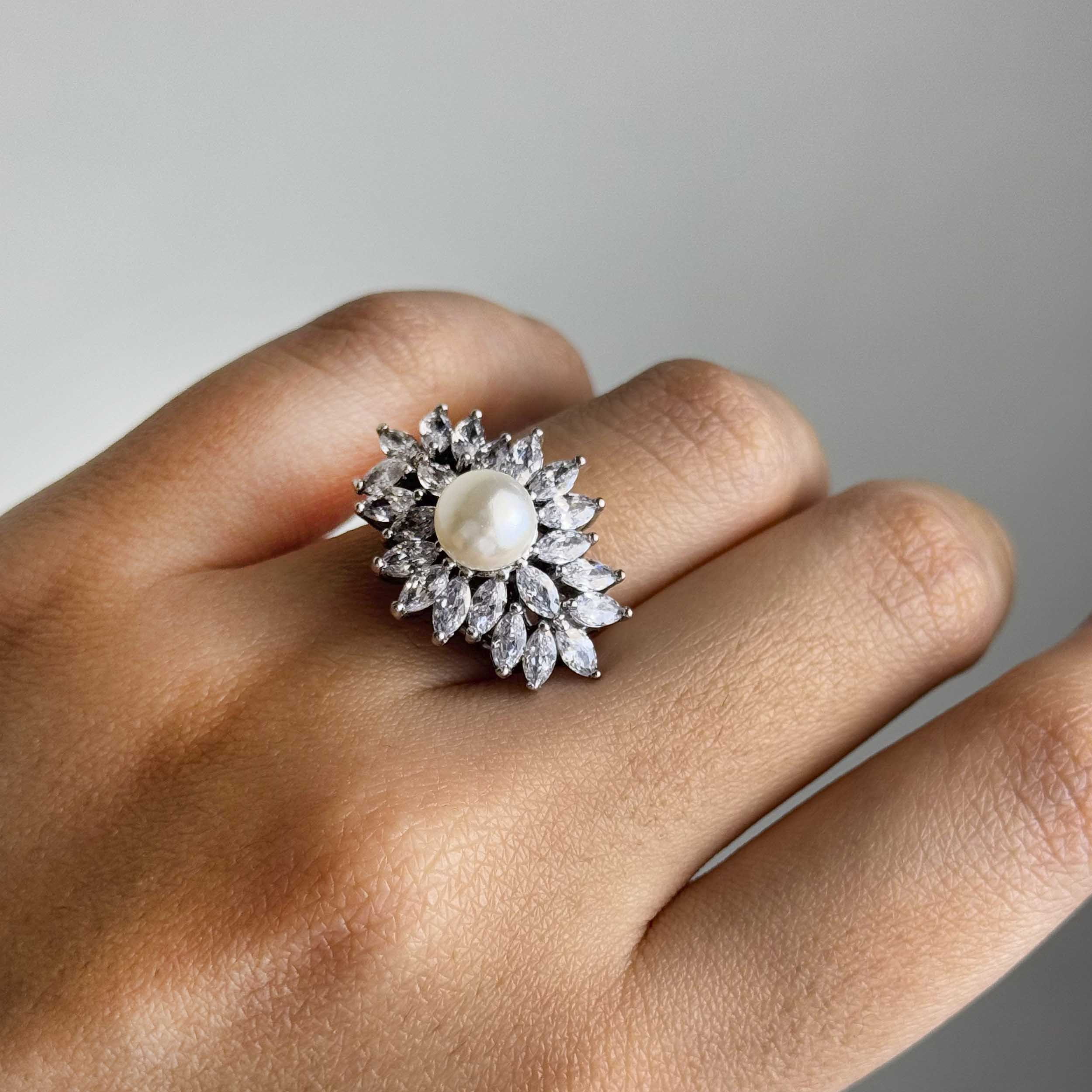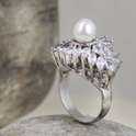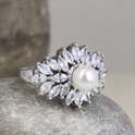 انگشتر نقره زنانه مدل سنگ مروارید مصنوعی مخراج نگین مارکیز ابکاری رادیوم کد AWR_2103