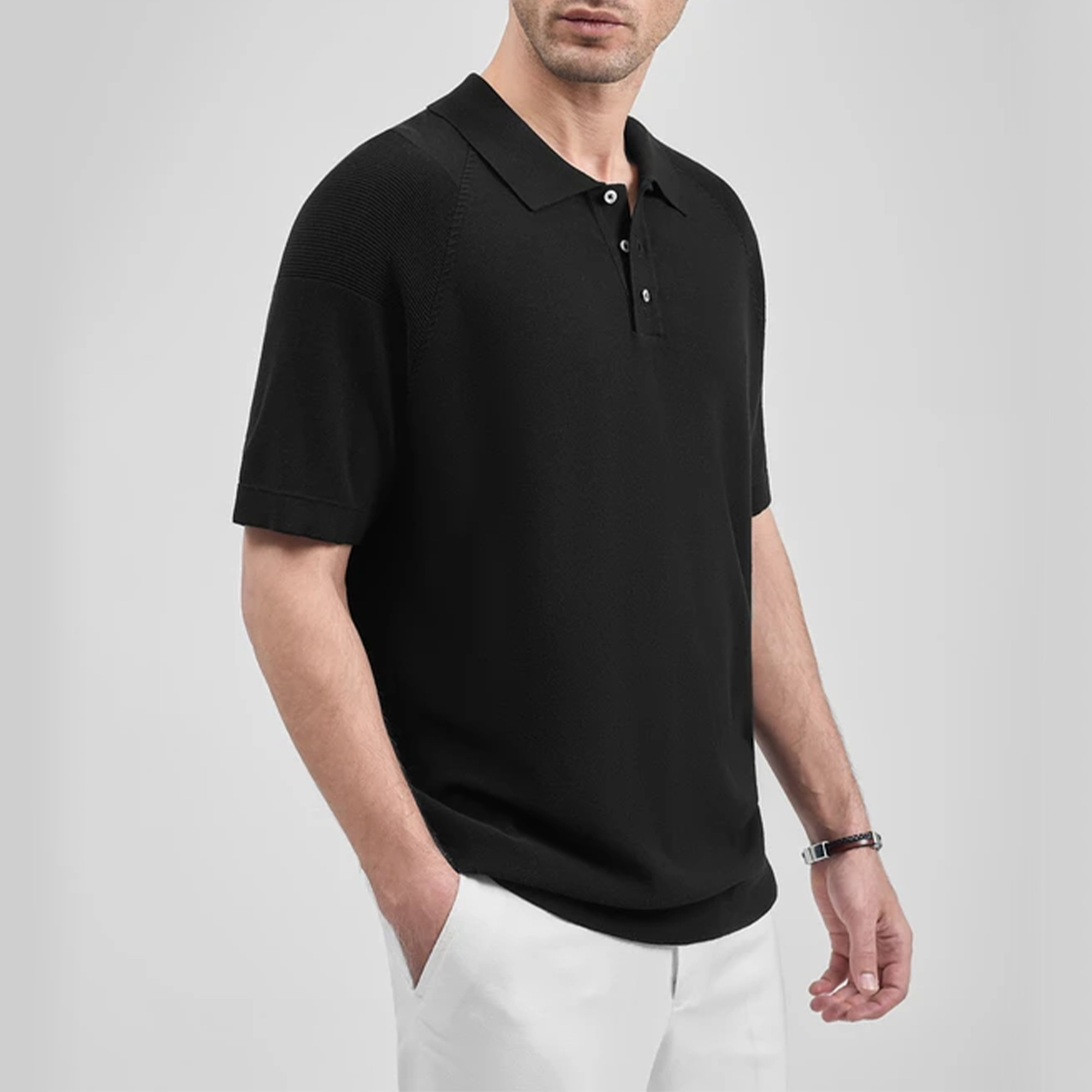 - جزئیاتپولوشرت آستین کوتاه ، دارای کشبافت در یقه و سرآستین ها و دور کمر، ثبات رنگ در شستشو/استایل: Comfort-Fit