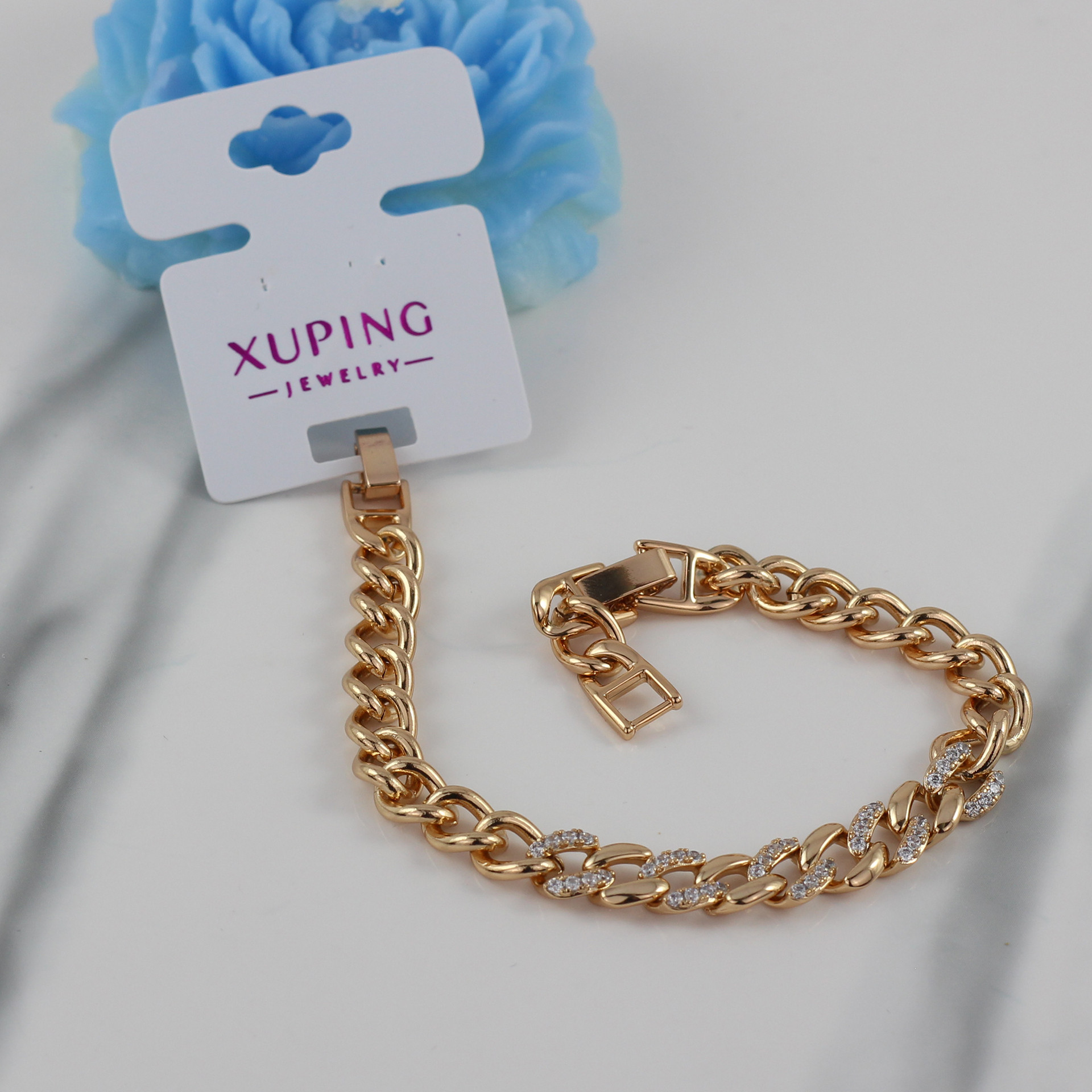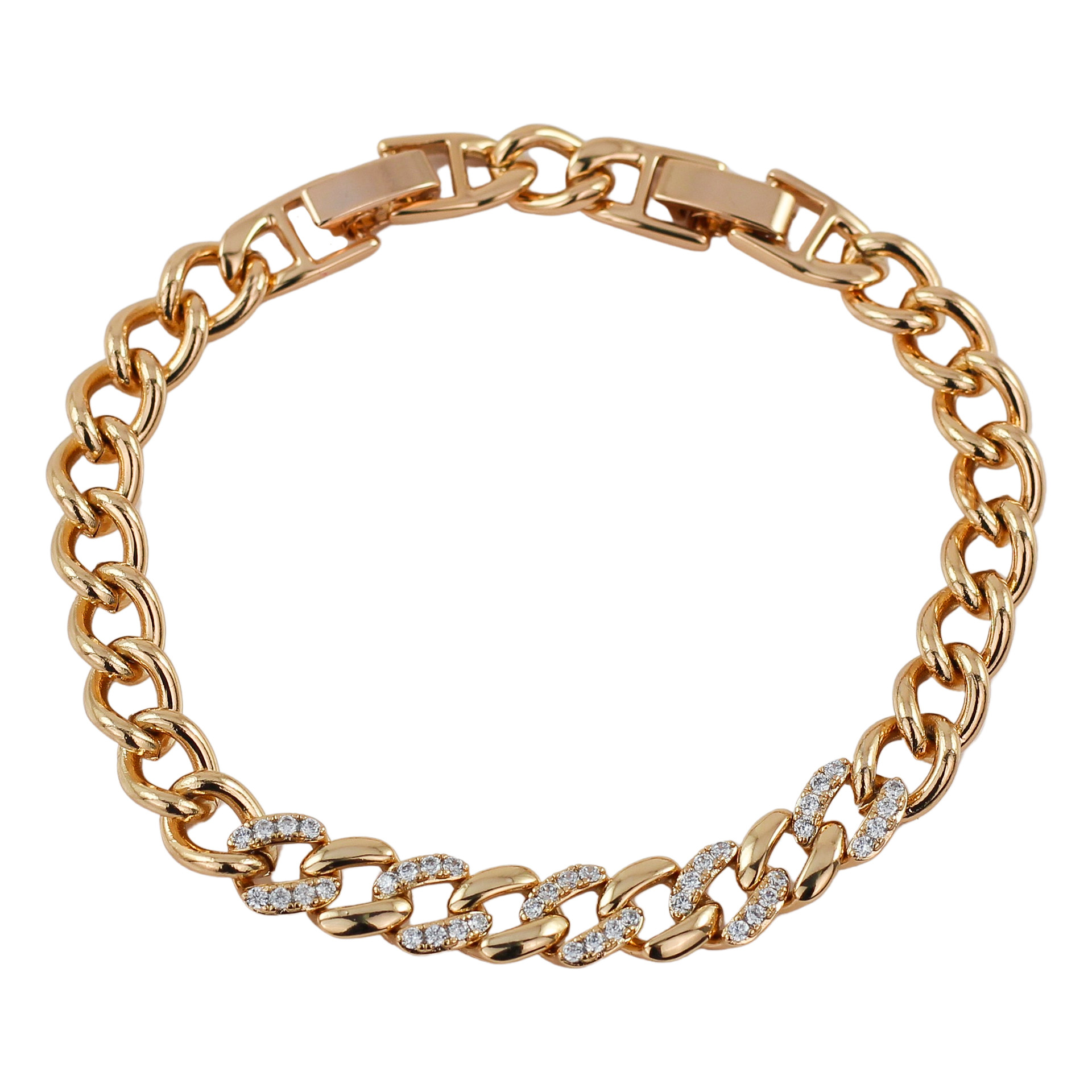 طرح طلا | رنگ ثابت | ضد حساسیت | طول دستبند: مناسب برای مچ 17 تا 19 سانتی متر | دستبند دارای دو قفل است. طول دستبند با قفل اول و قفل دوم حدود دو سانتی متر تفاوت دارد