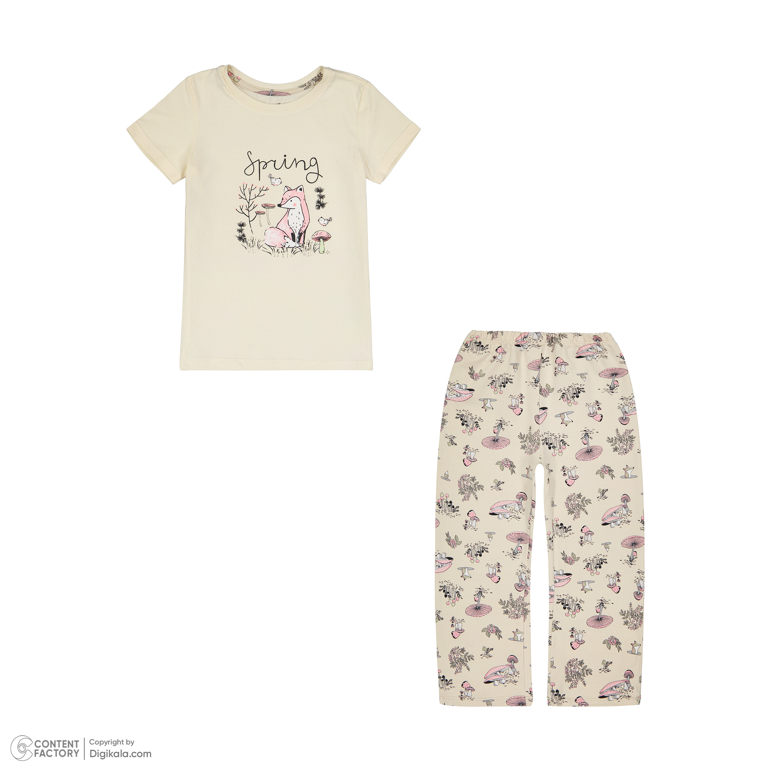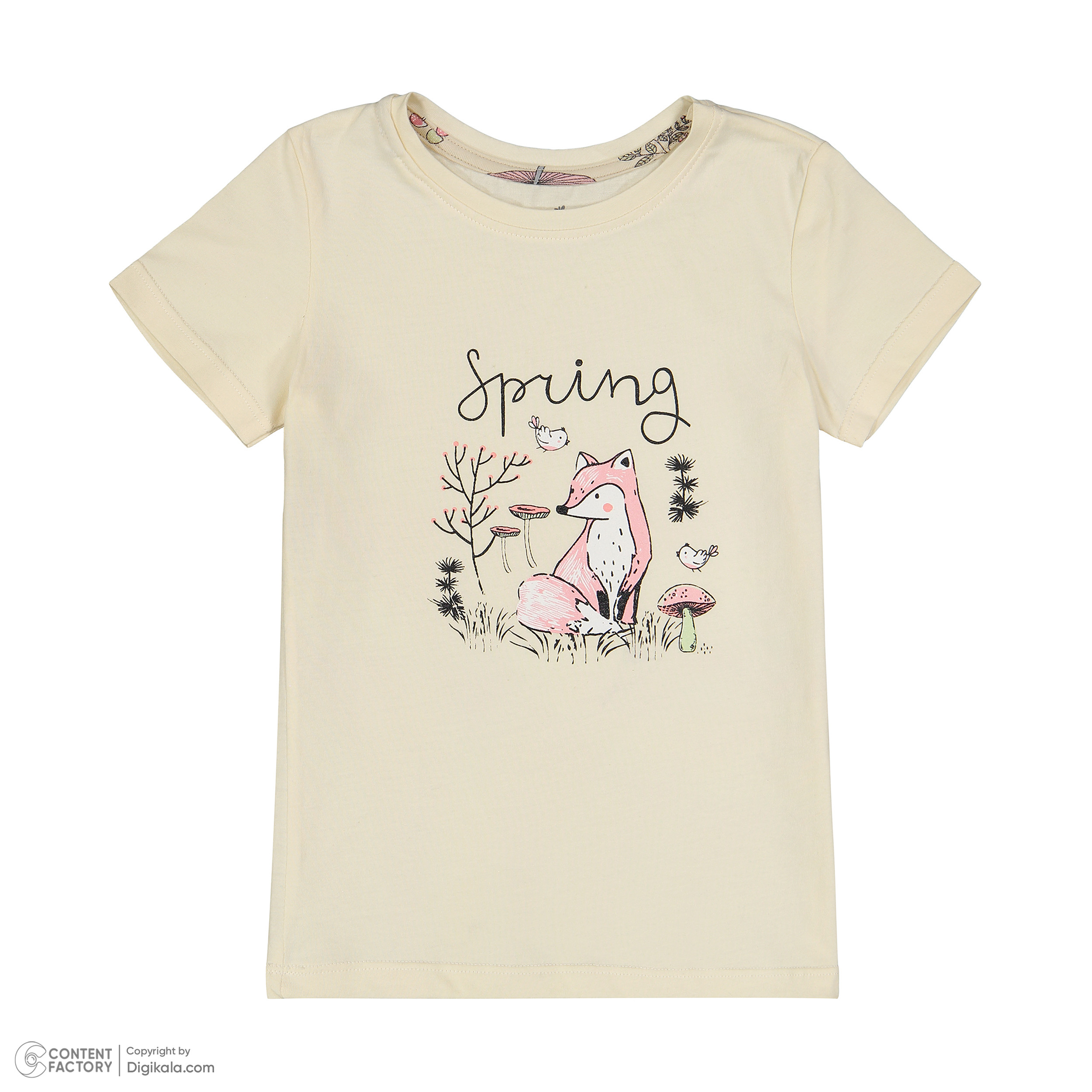 ست تی شرت و شلوار دخترانه ناربن مدل 1183 رنگ زرد روشن