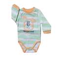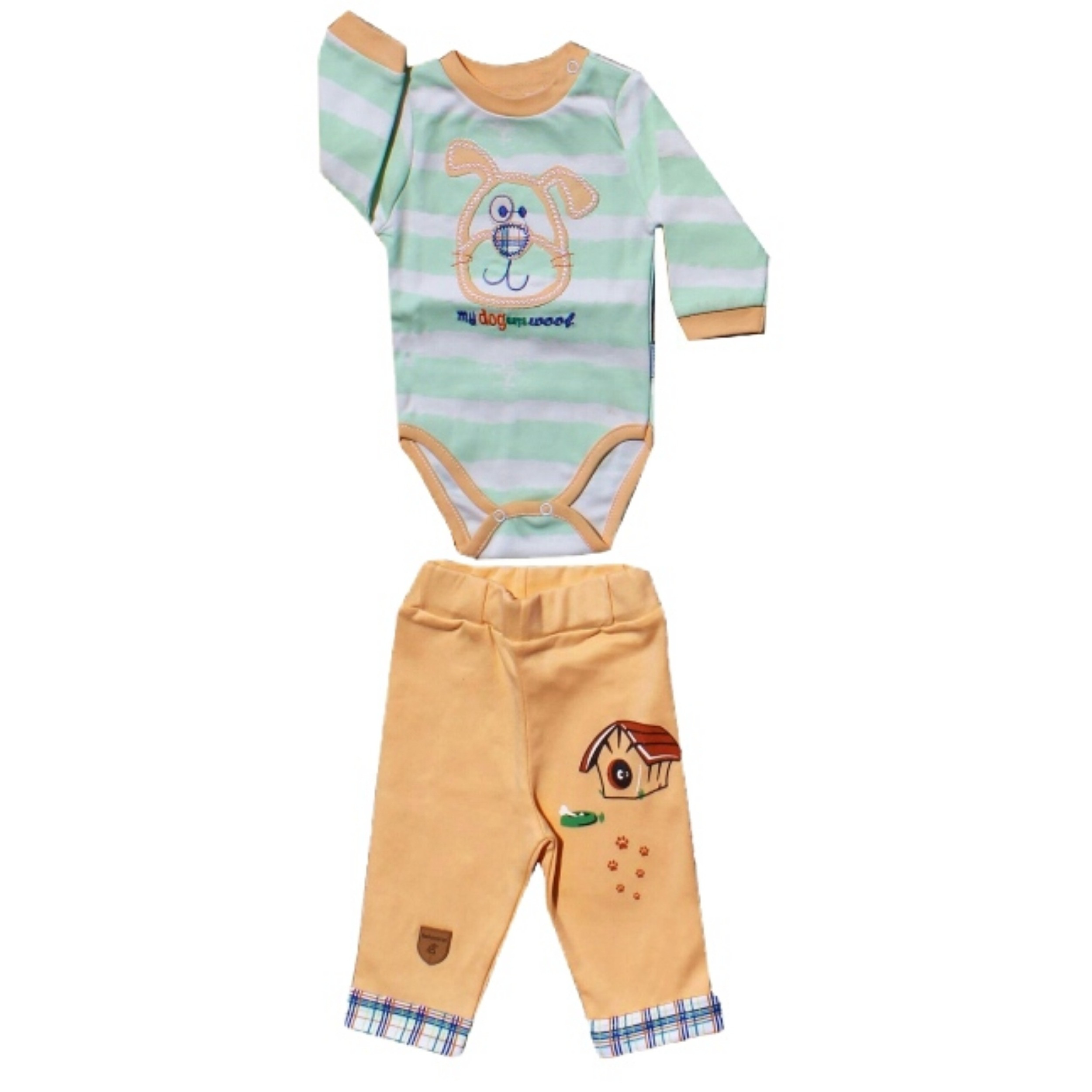 این محصول از الیاف صد در صد پنبه بوده و به خاطر جنس لطیف آن از حساسیت های پوستی کودک دلبندتان جلوگیری کرده و به خاطر الیاف و نوع رنگ آمیزی آن و جنس مرغوبش پس از شستشو های متوالی رنگ و ظاهر آن خراب نمی شود و بارها قابل شستشو بوده بدون اینکه تغییر رنگ دهد یا کدر شود.این محصول در هر چهار فصل قابل استفاده است.ضمنا توصیه می شود با آب در دمای 30 و به صورت پشت و رو برای افزایش طول عمر بیشتر آن شسته شود. - نگهداریست لباس دو تیکه شامل یک بادی آستین بلندو شلوار میباشد. ضمن آنکه جنس پنبهای نرم و لطیف این لباس، راحتی هرچه تمامتر را برای کودک به ارمغان میآورد. یقه بلوز طوری طراحی شده که به راحتی بتوان آن را به کودک بپوشانید.