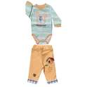 - جزئیاتست لباس دو تیکه شامل یک بادی آستین بلندو شلوار میباشد. ضمن آنکه جنس پنبهای نرم و لطیف این لباس، راحتی هرچه تمامتر را برای کودک به ارمغان میآورد. یقه بلوز طوری طراحی شده که به راحتی بتوان آن را به کودک بپوشانید.