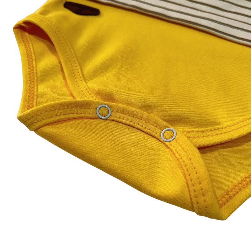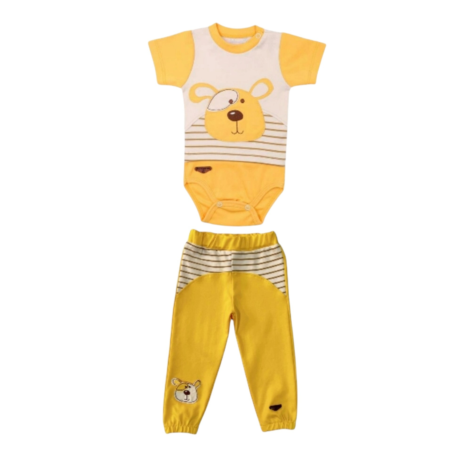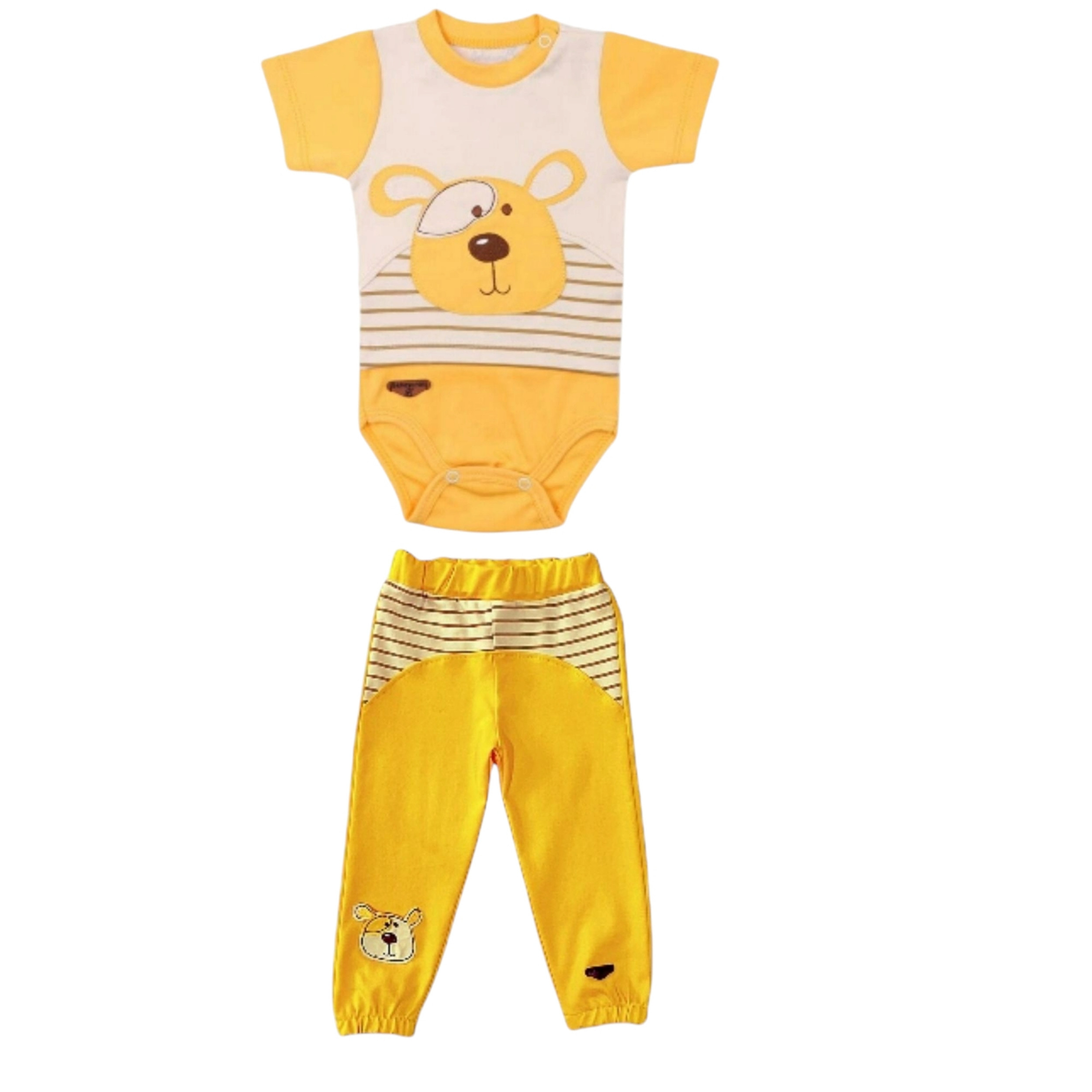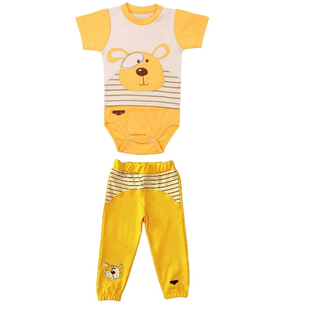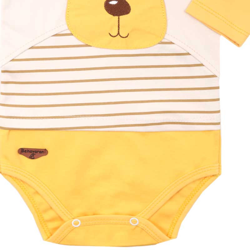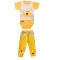 ست لباس دو تیکه شامل یک بادی شلوار میباشد. ضمن آنکه جنس پنبه‌ای نرم و لطیف این لباس، راحتی هرچه تمام‌تر را برای کودک به ارمغان می‌آورد. یقه بلوز طوری طراحی شده که به راحتی بتوان آن را به کودک بپوشانید.