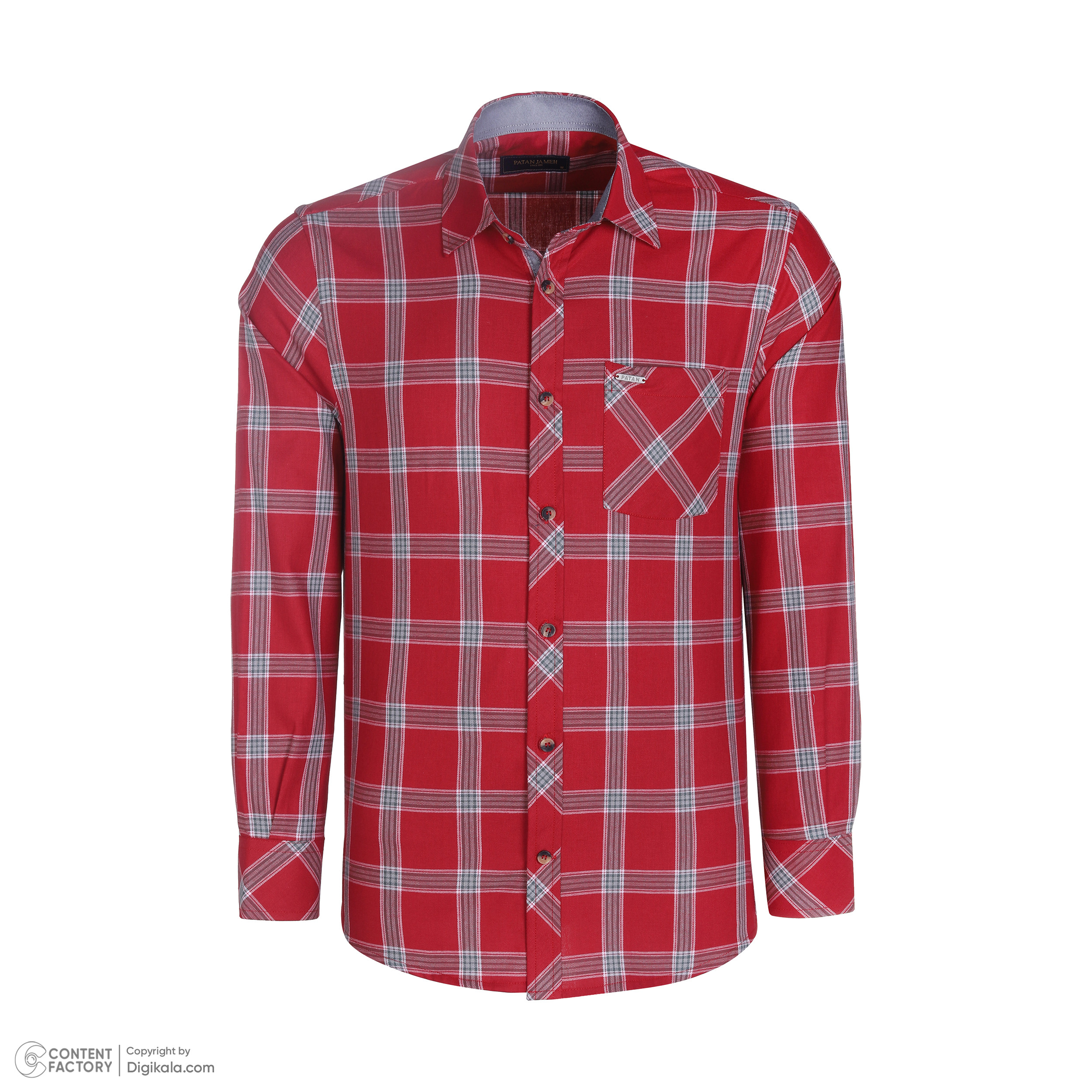 پیراهن آستین بلند یقه برگردان مردانه پاتن جامه مدل کلاسیک 102721030204805 طرح چهارخانه