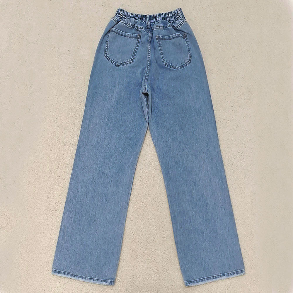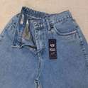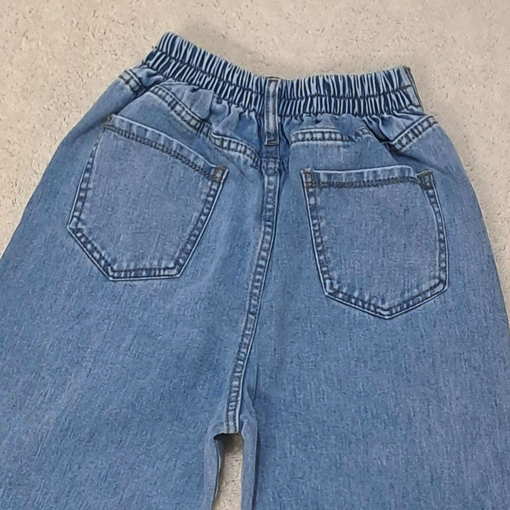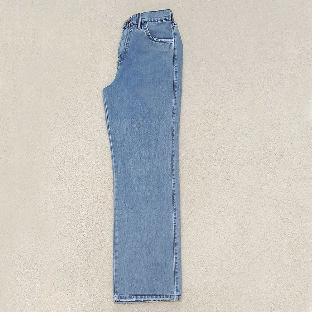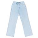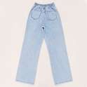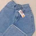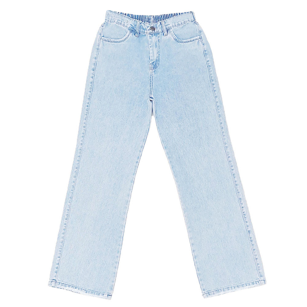 (پارچه ی جین پنبه بدون کش) (مدل نیم بگ) (جدول انتخاب سایز در قسمت تصاویر) (دارای چهار جیب) (پشت کمر کشی) (بسته شدن فاق با زیپ) (رنگ آبی روشن ، سنگشور رندوم)