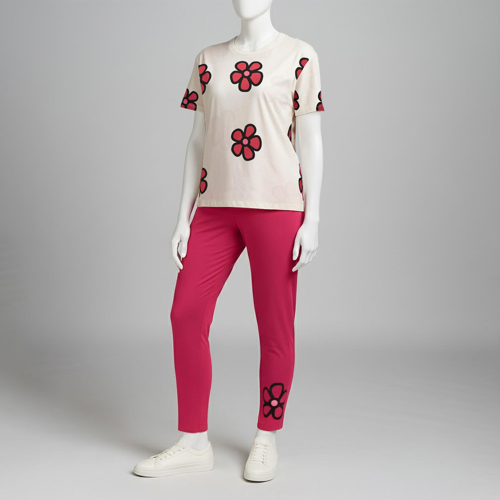 ست تی شرت آستین کوتاه و شلوار زنانه مادر مدل Rebecca رنگ سرخابی
