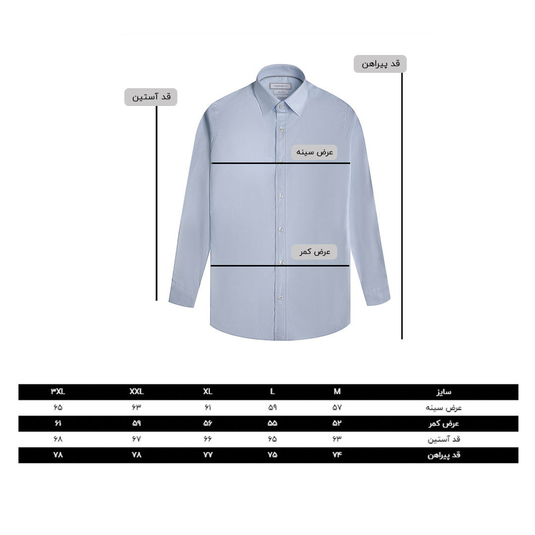 پیراهن آستین بلند، آستین دو دکمه، دارای یقه دکمه مخفی، ثبات رنگ در شستشو/استایل: Slim-Fit