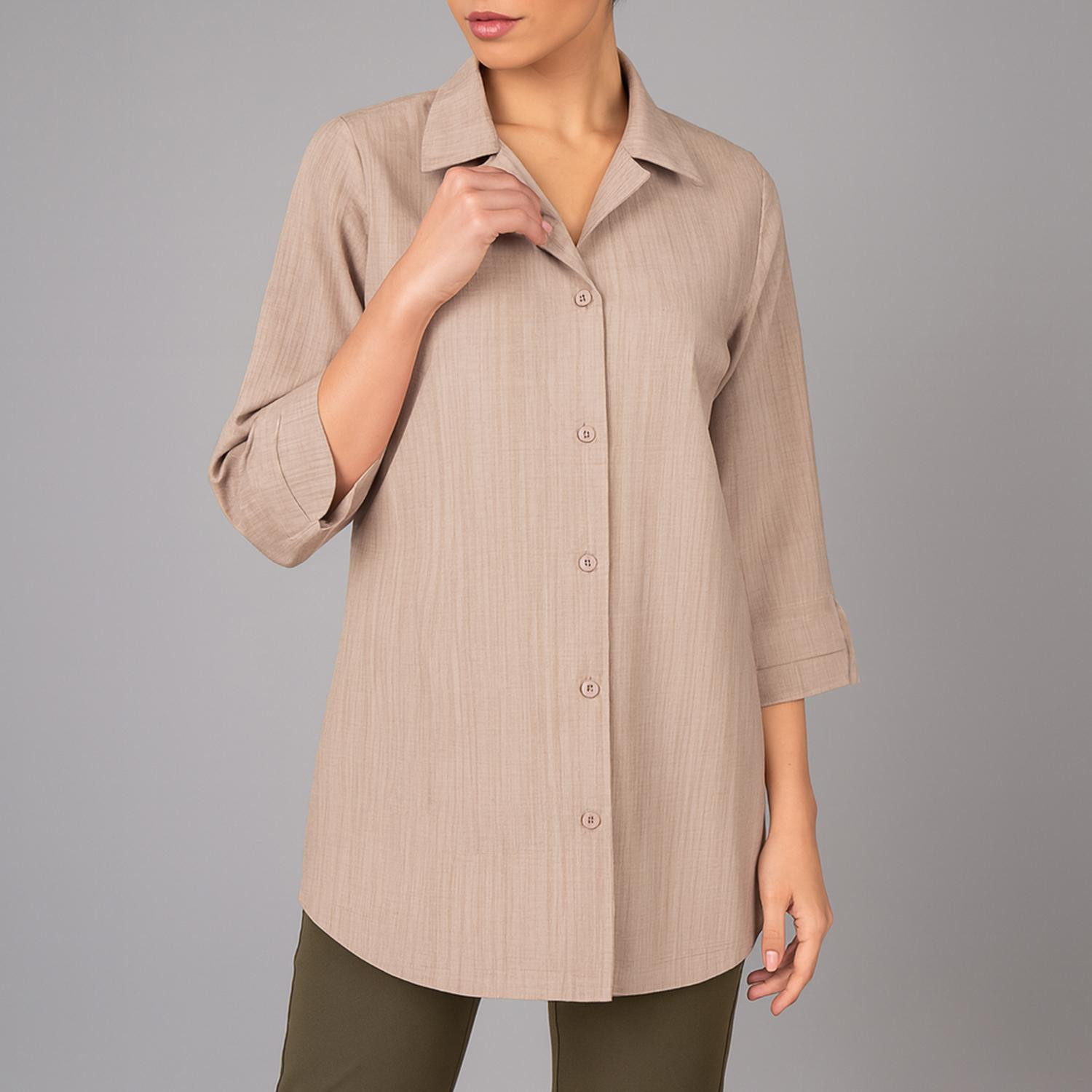 شومیز آستین بلند زنانه بنیس مدل 34154102 رنگ کرم تیره