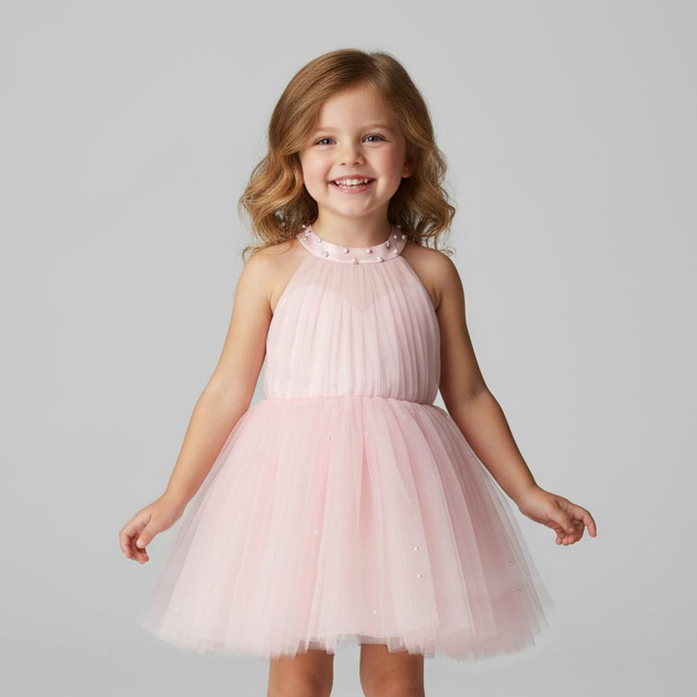 پیراهن بدون آستین یقه هالتر دخترانه تیتیش مدل 656 رنگ صورتی