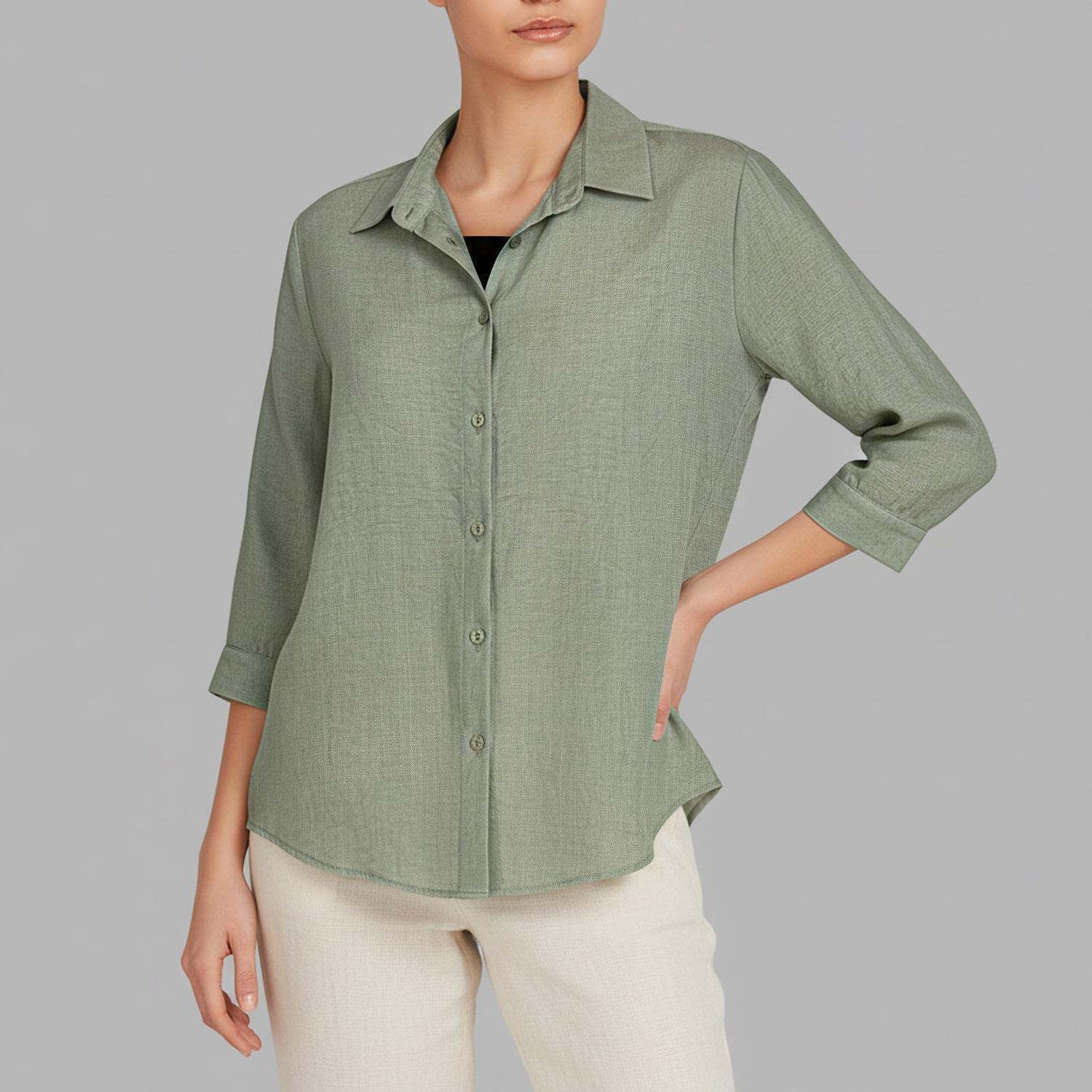 شومیز آستین بلند یقه برگردان زنانه نیزل مدل 1247 رنگ سبز