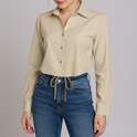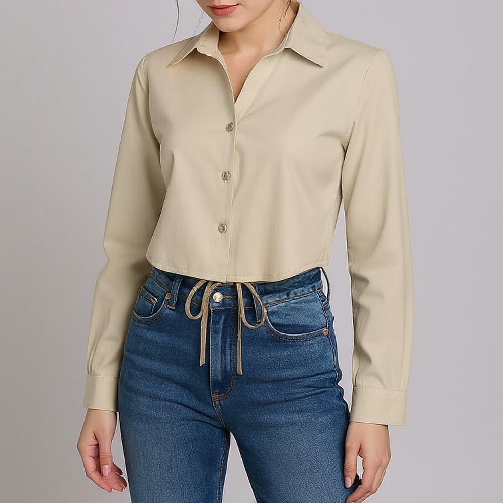 کراپ شومیز آستین بلند یقه برگردان زنانه نیزل مدل 1257 رنگ کرم