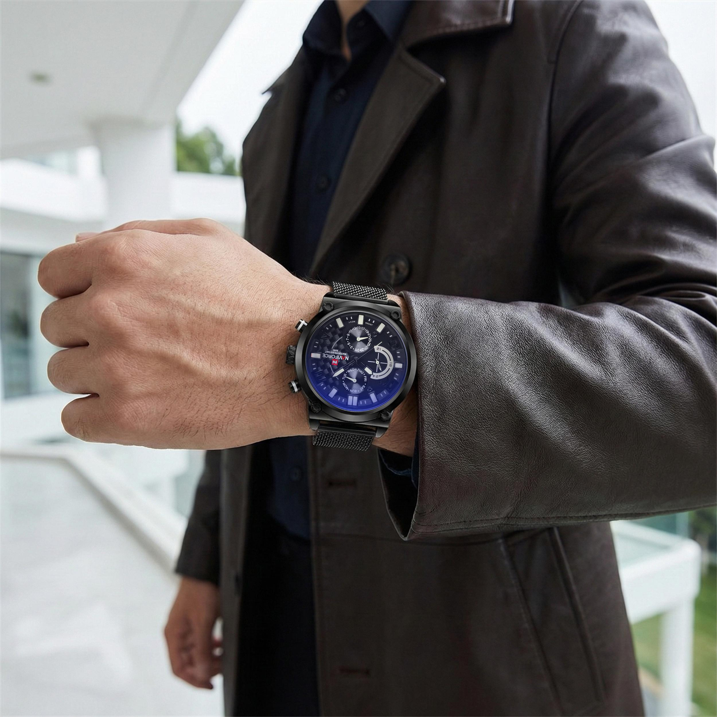ساعت مچی عقربهای کوارتز مردانه نیوی فورس مدل NF9068M-BBW
