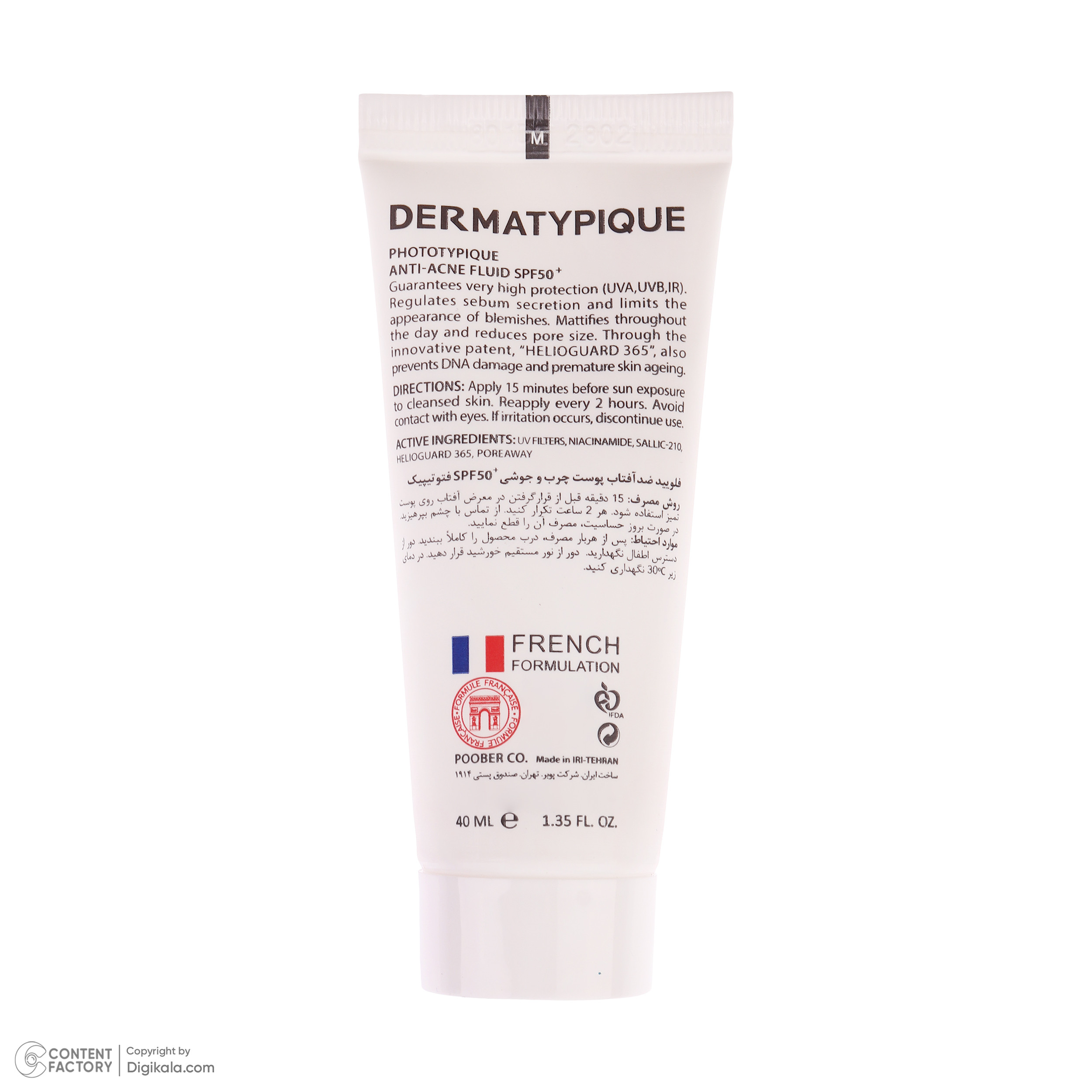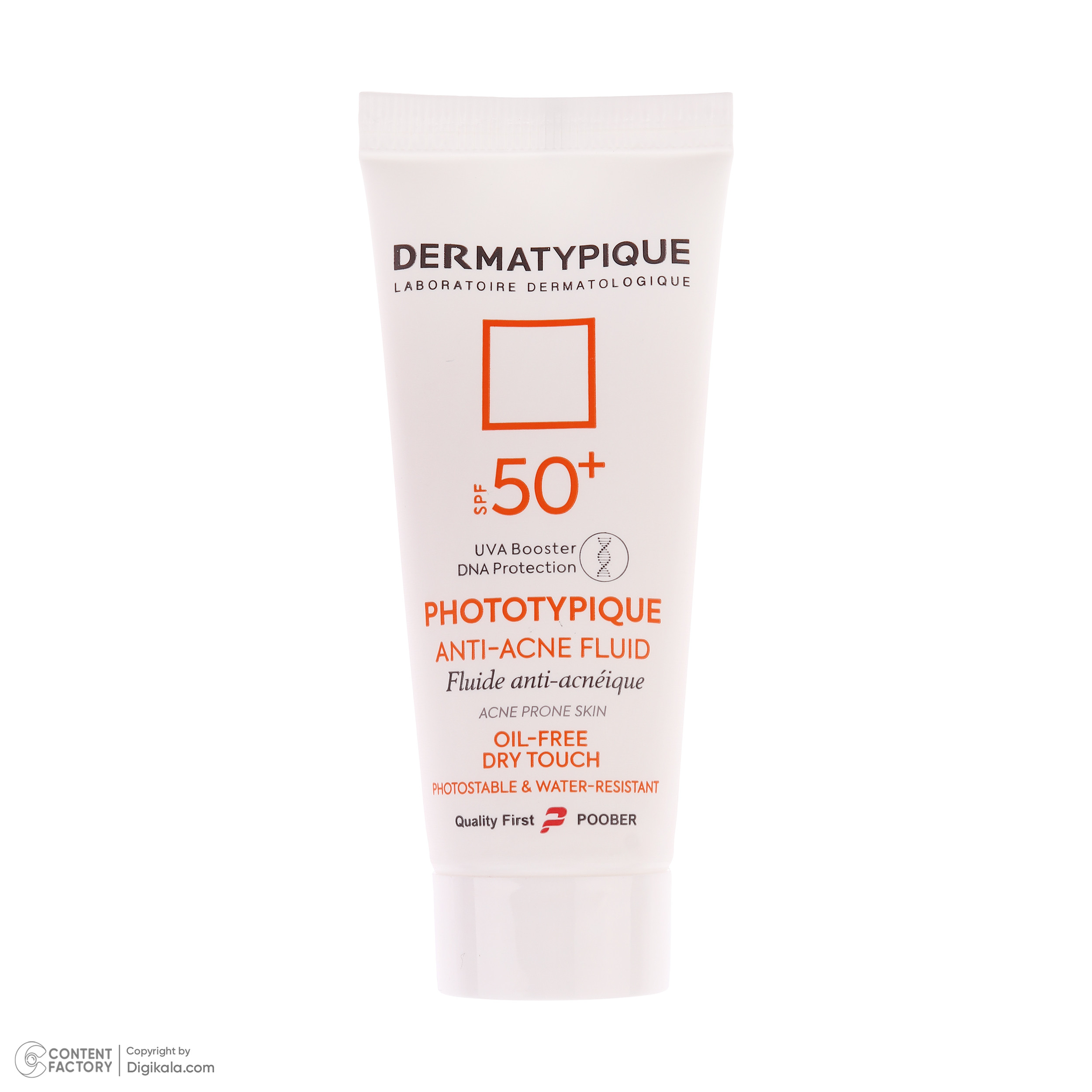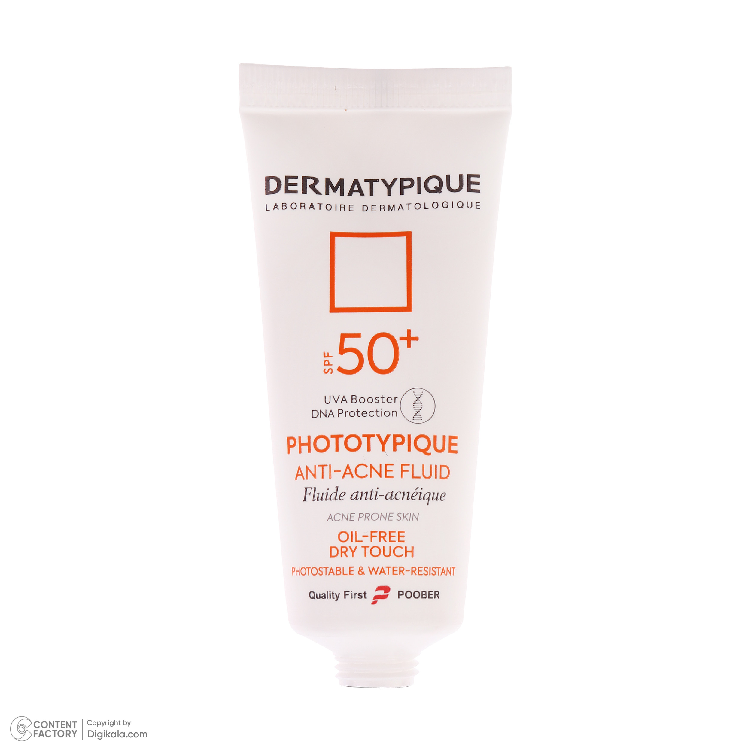 فلوئید ضد آفتاب بدون رنگ درماتیپیک مدل anti acne محافظ UVA،UVB مناسب برای انواع پوست حجم 40 میلی لیتر