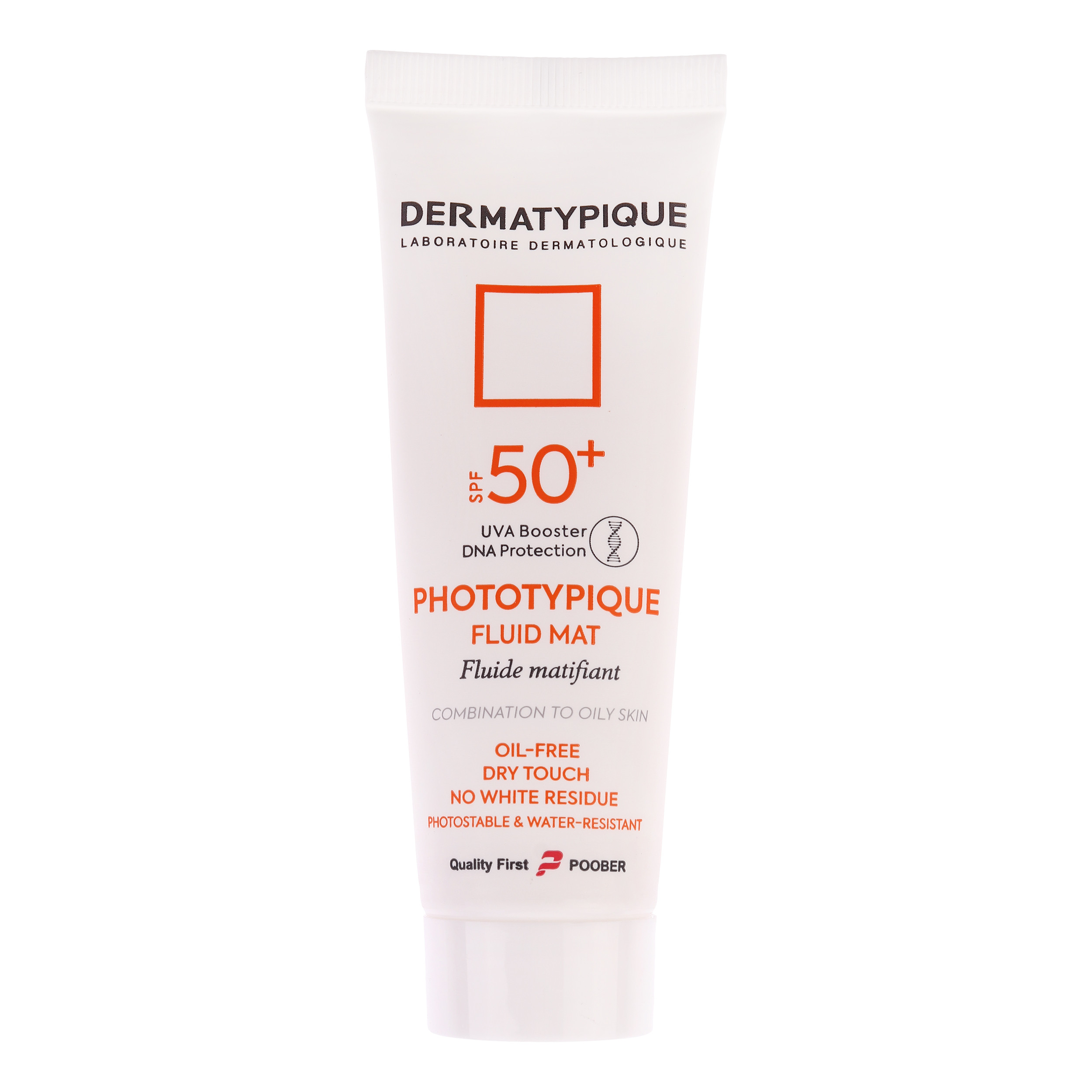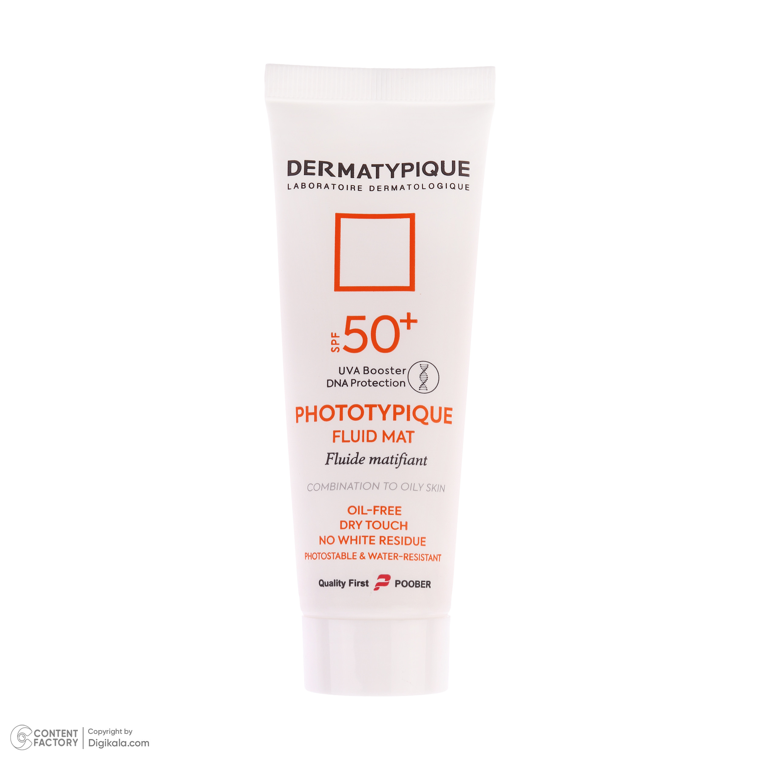 فلوئید ضد آفتاب بدون رنگ درماتیپیک مدل مات محافظ UVA،UVB مناسب برای پوست چرب حجم 50 میلی لیتر