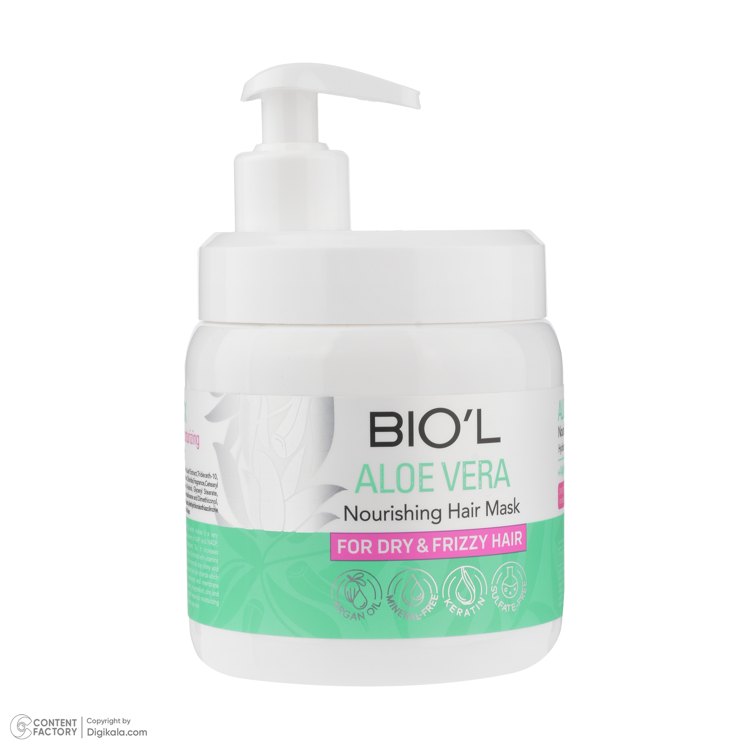 ماسک ترمیم کننده مو با آبکشی بیول مدل AloeVera مناسب برای موهای خشک و وزدار حجم 500 میلی لیتر