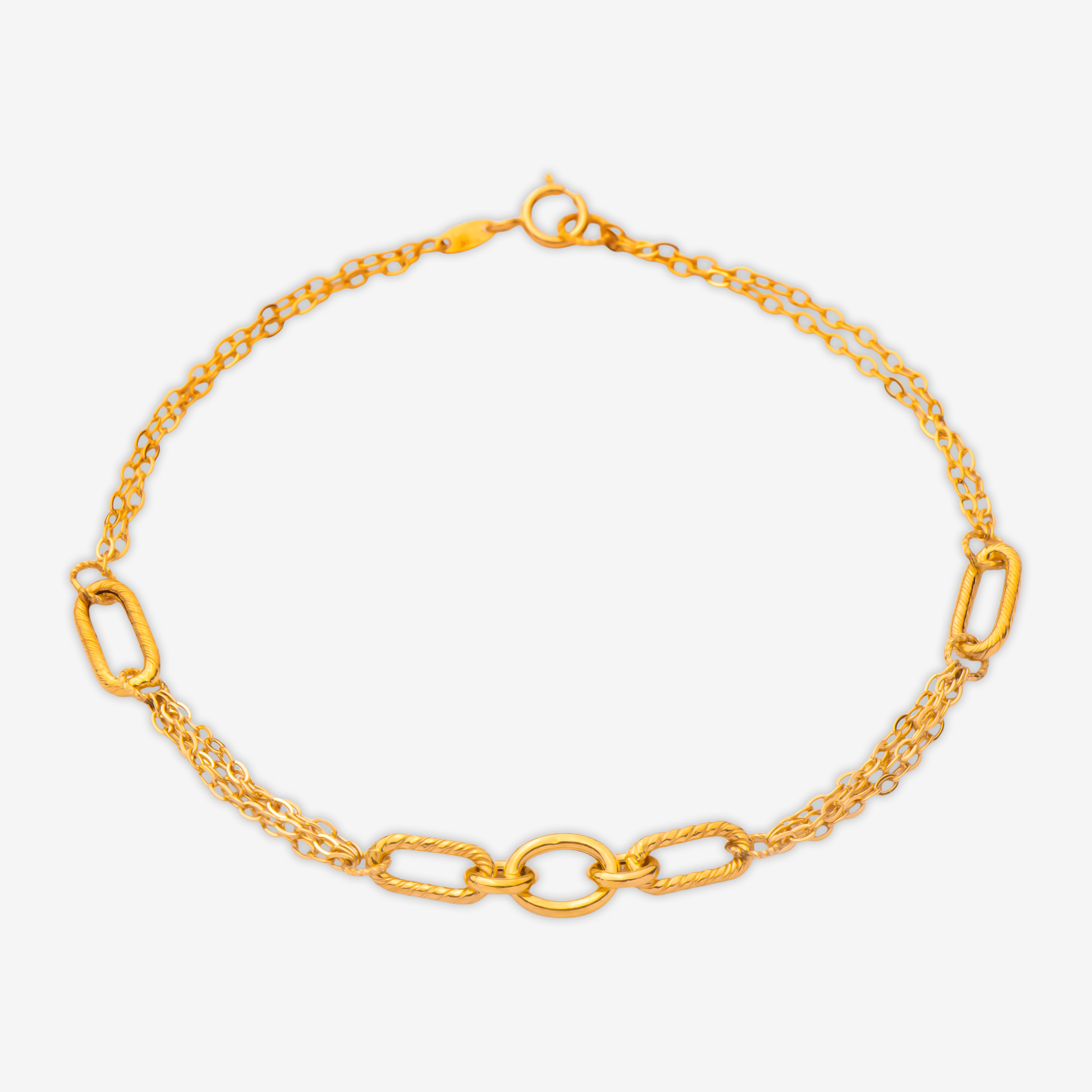 دستبند زنجیری طلا کم اجرت 18 عیار زنانه نگین مدل 142