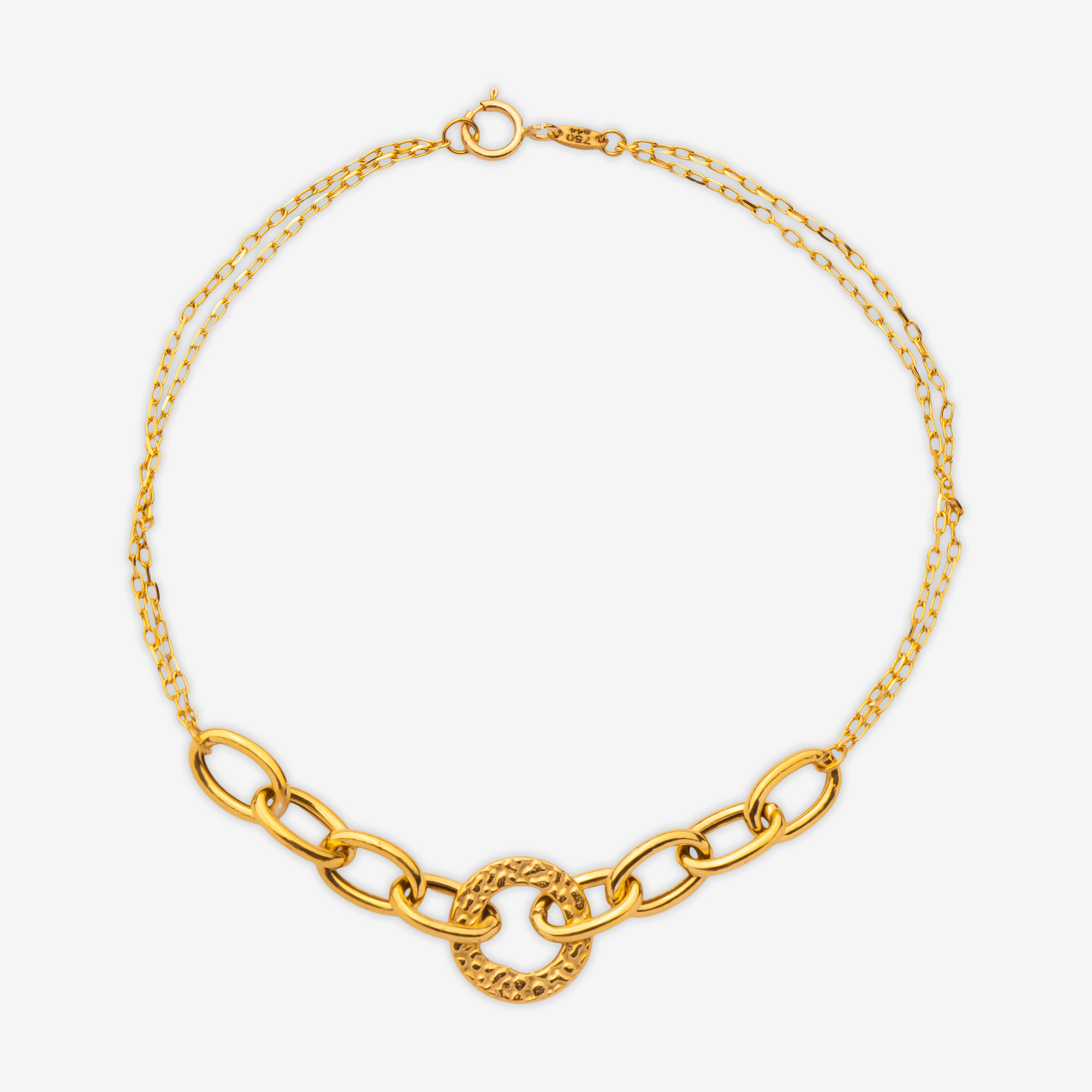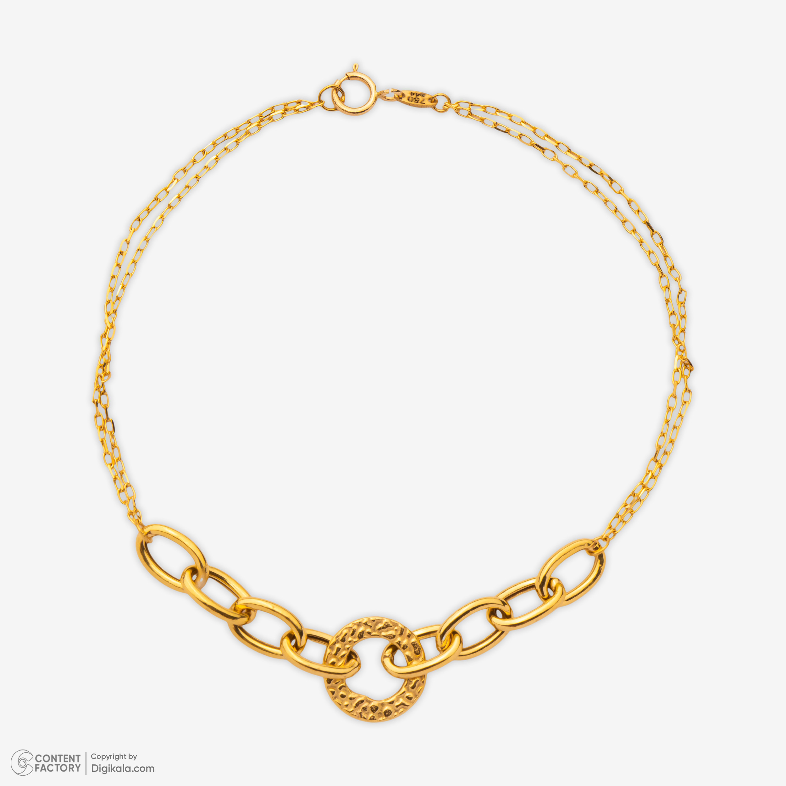 دستبند زنجیری طلا کم اجرت 18 عیار زنانه نگین مدل 143