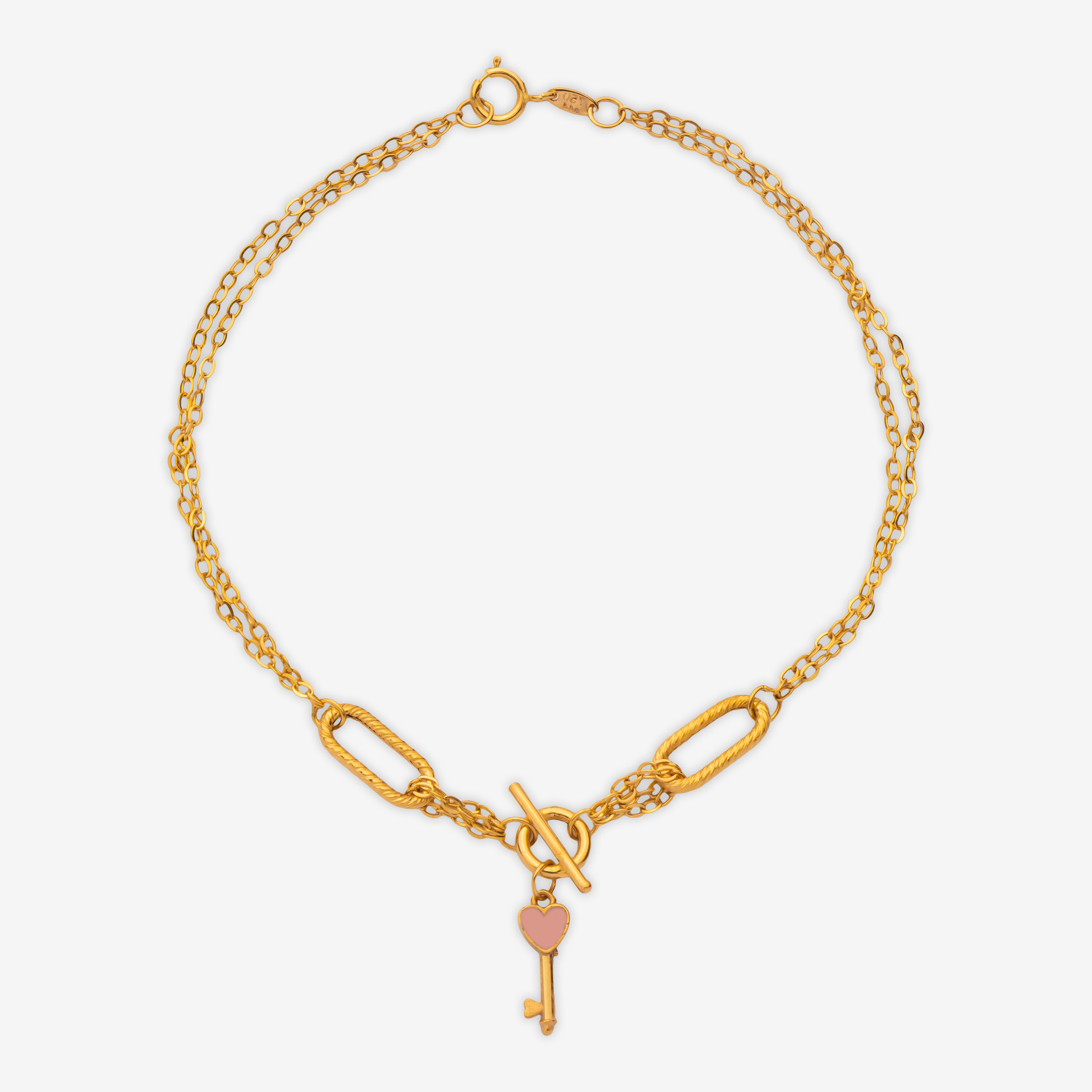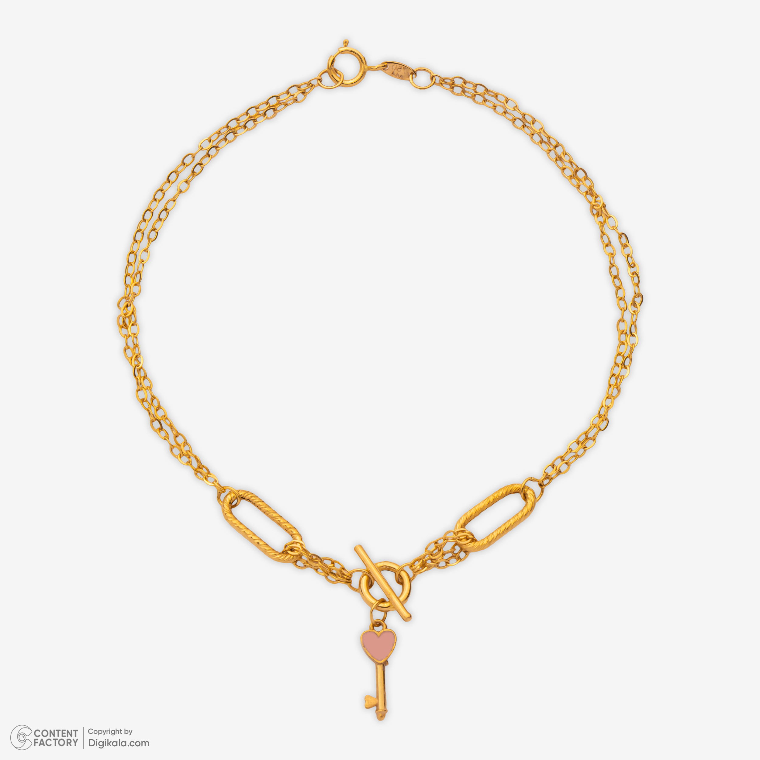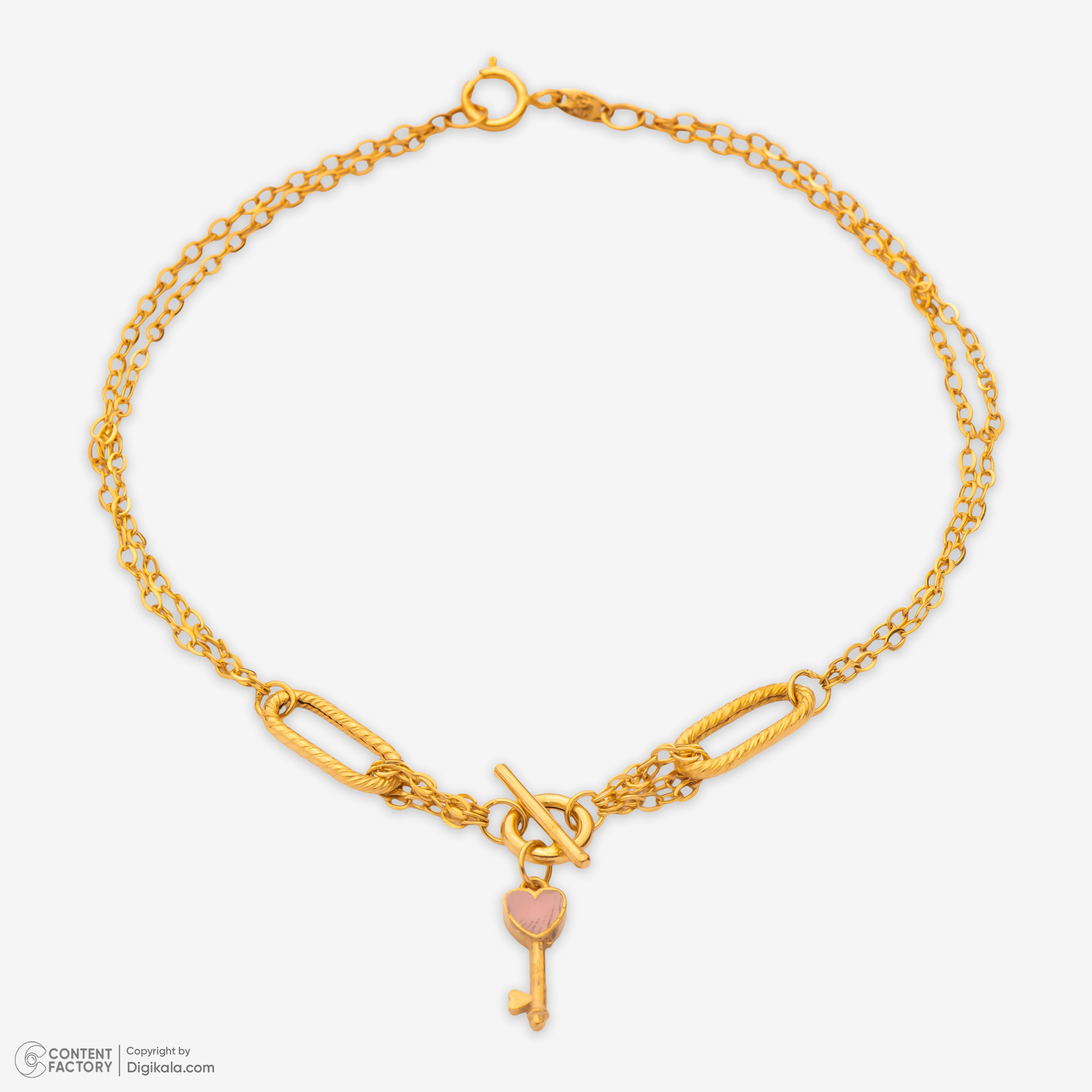 دستبند زنجیری طلا کم اجرت 18 عیار زنانه نگین مدل 148