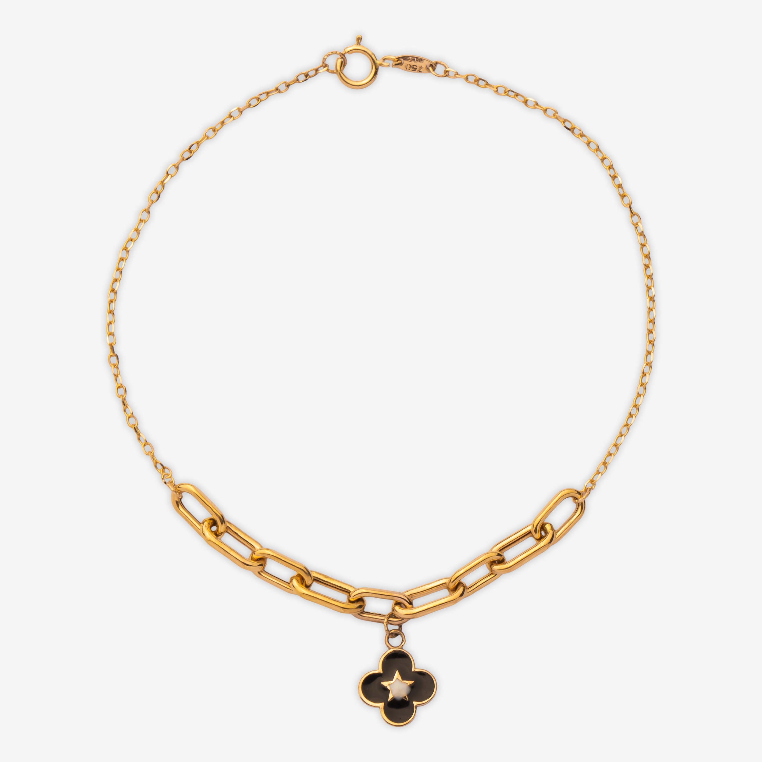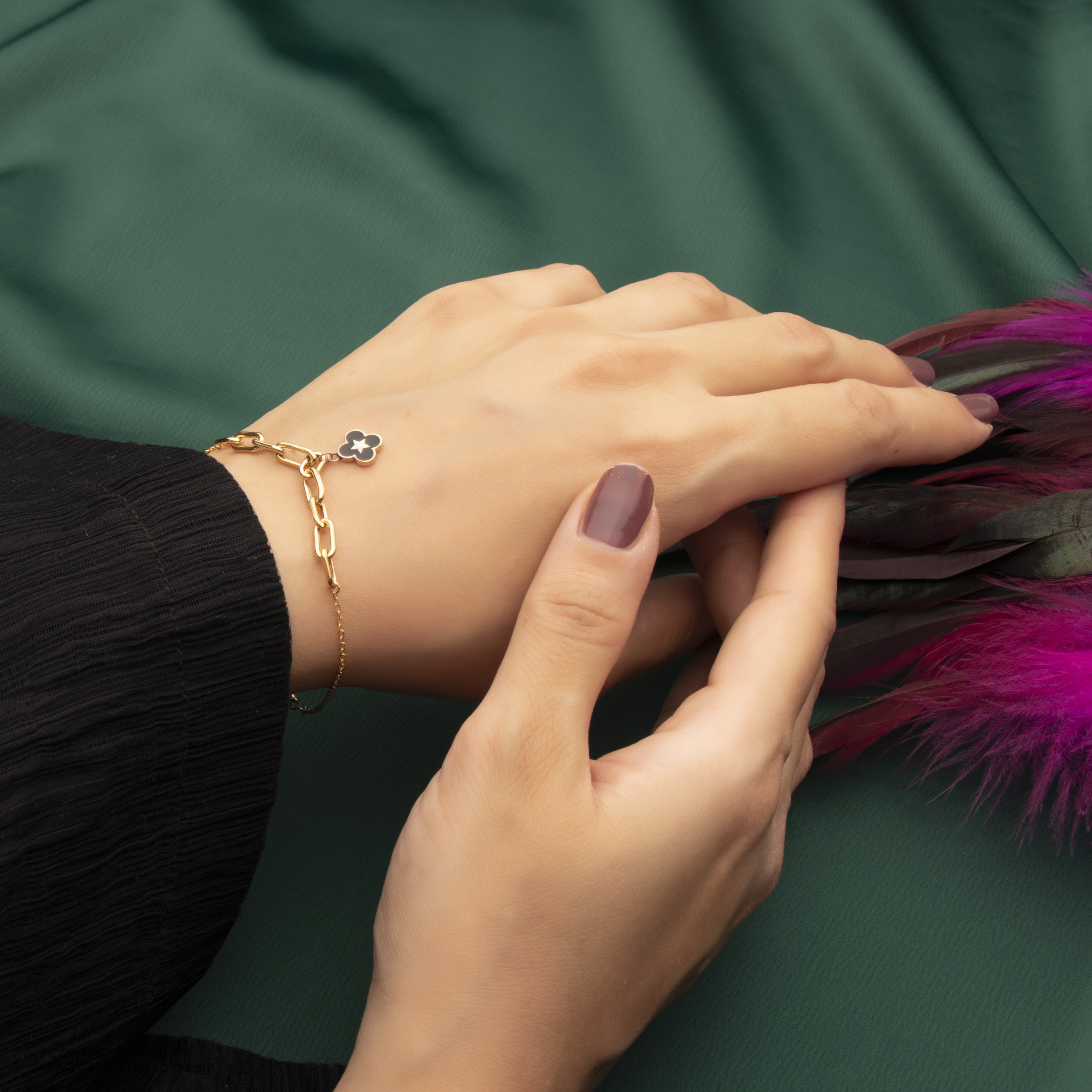دستبند زنجیری طلا کم اجرت 18 عیار زنانه نگین مدل 131