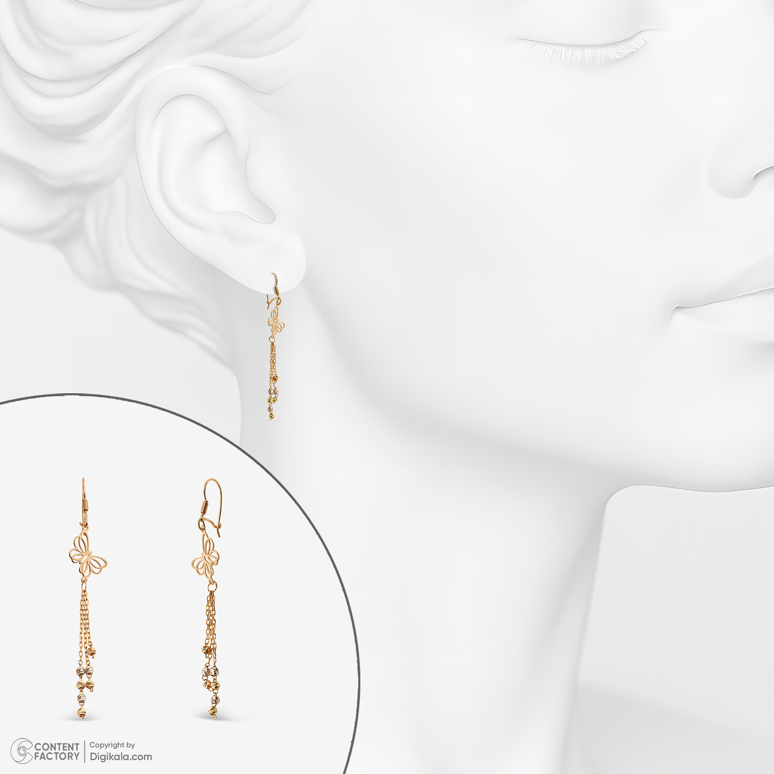 گوشواره عصایی طلا کم اجرت 18 عیار زنانه نگین مدل 121