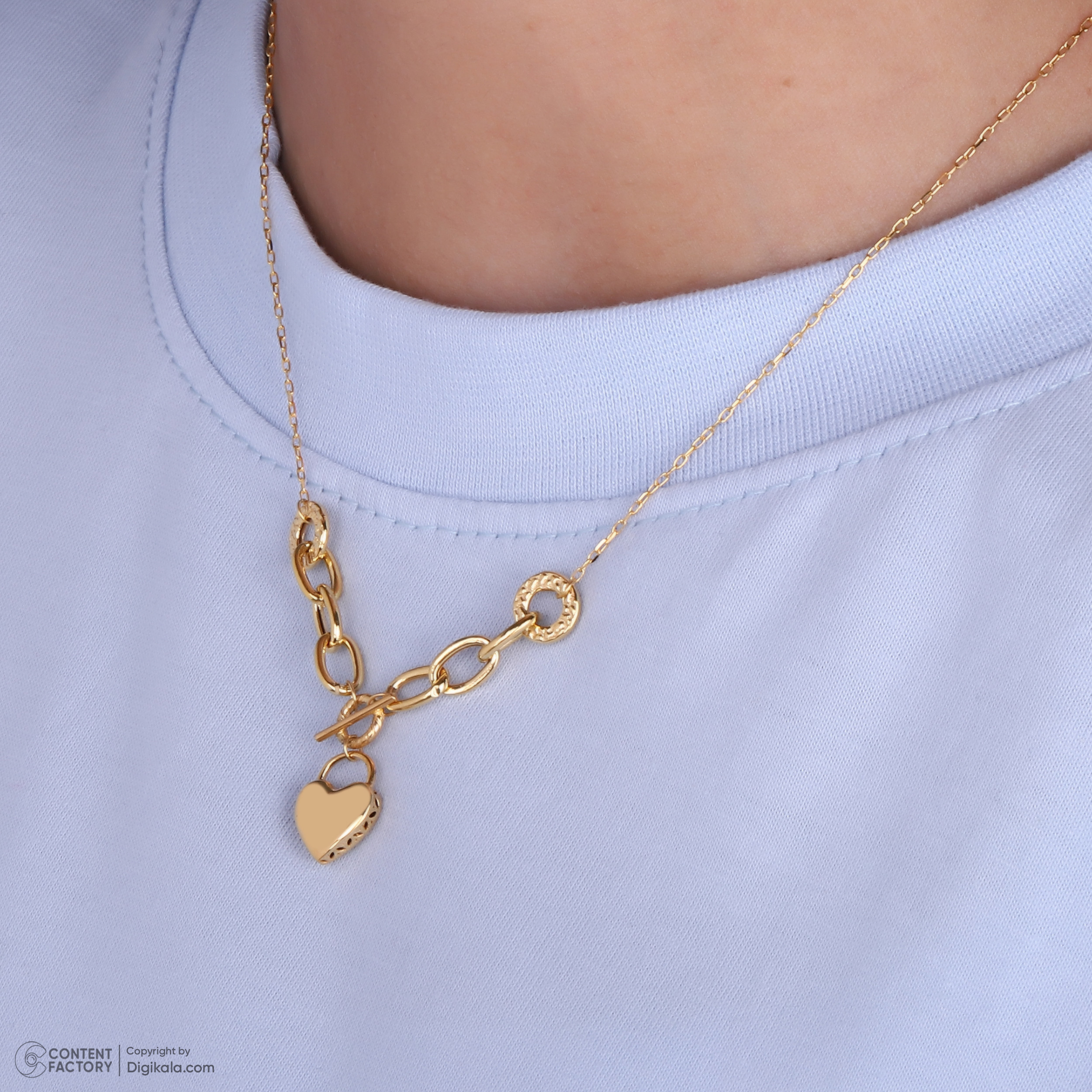 - نوع گردنبند طلای دست اول کم اجرت زنانهزنجیر و پلاک متصل