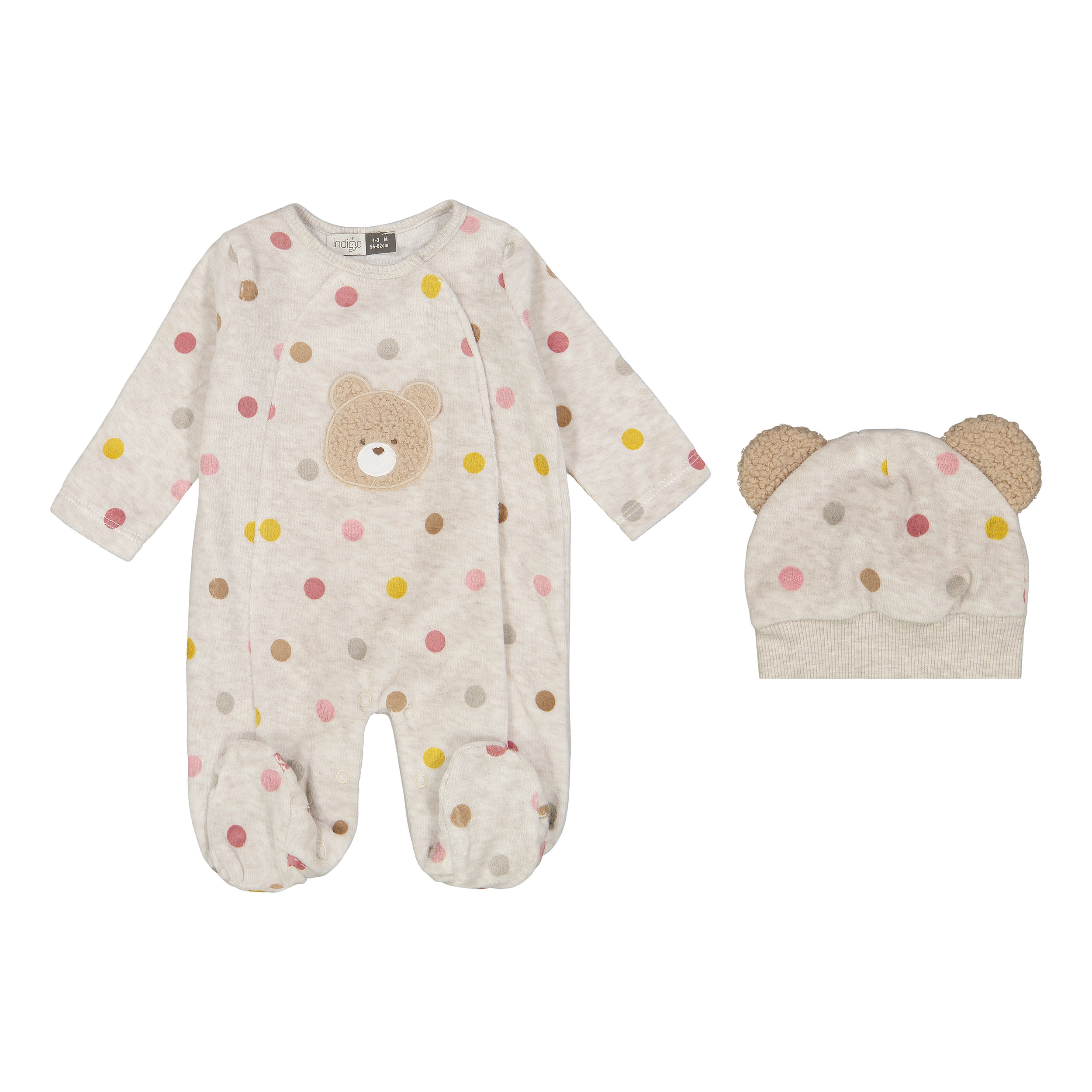 سرهمی نوزادی ایندیگو مدل کوکی کد 24109 به همراه کلاه