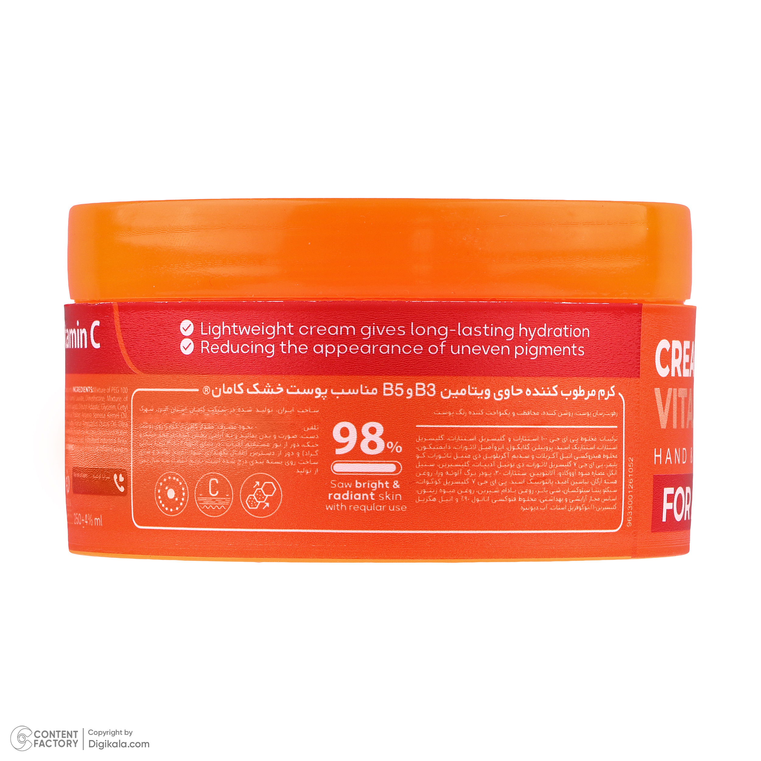 کرم مرطوب کننده صورت و دست کامان مدل Vitamin C مناسب برای انواع پوست حجم 250 میلی لیتر