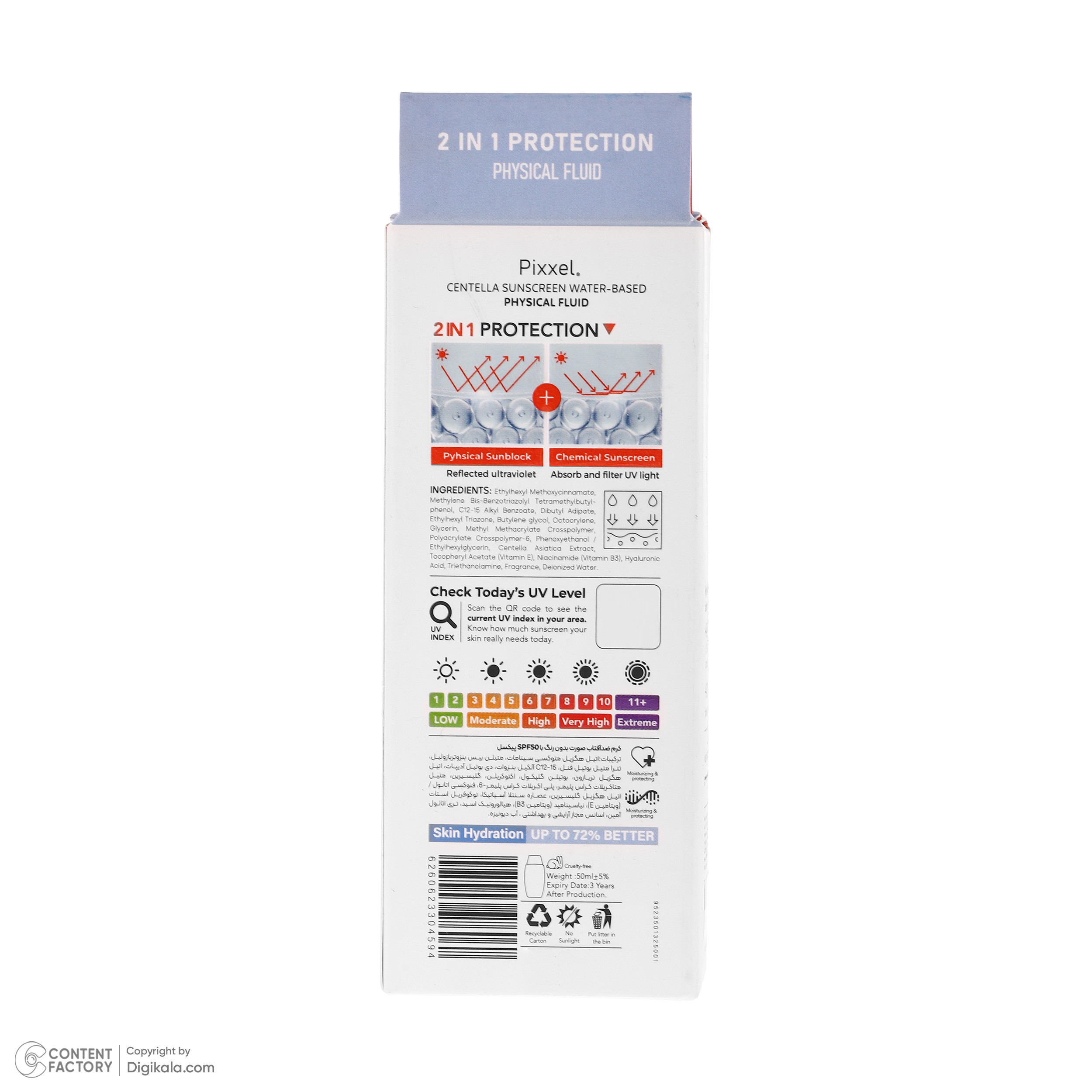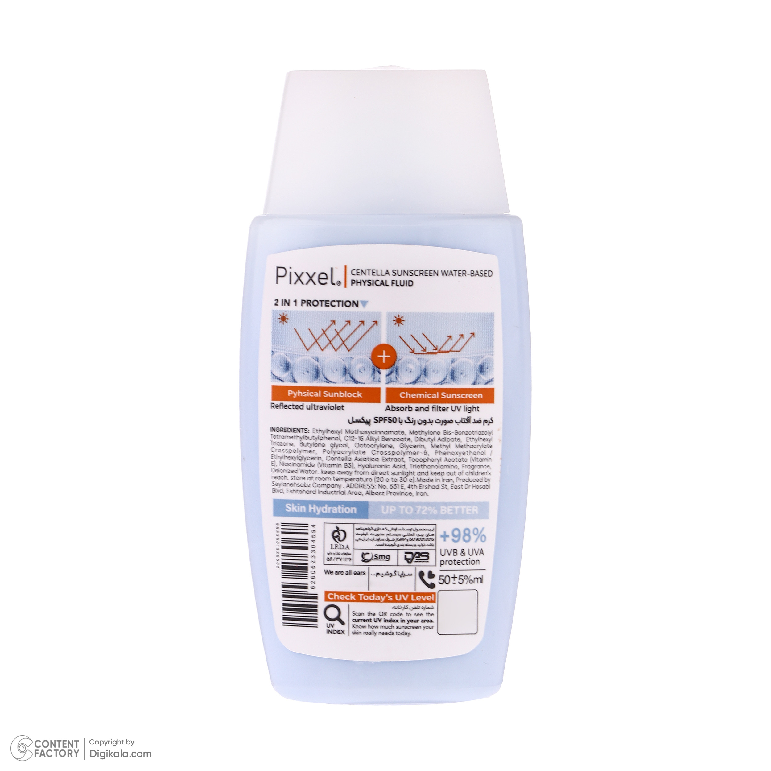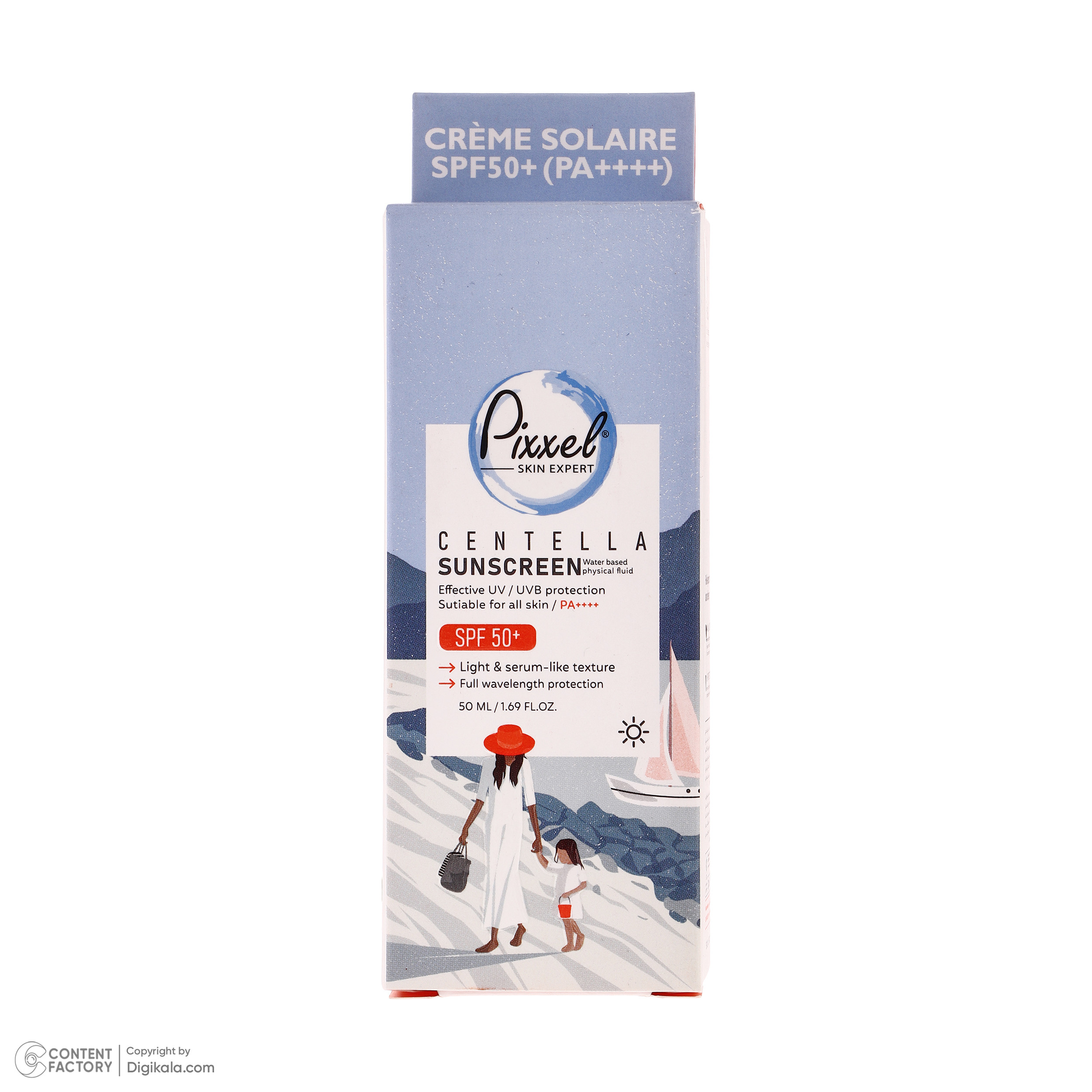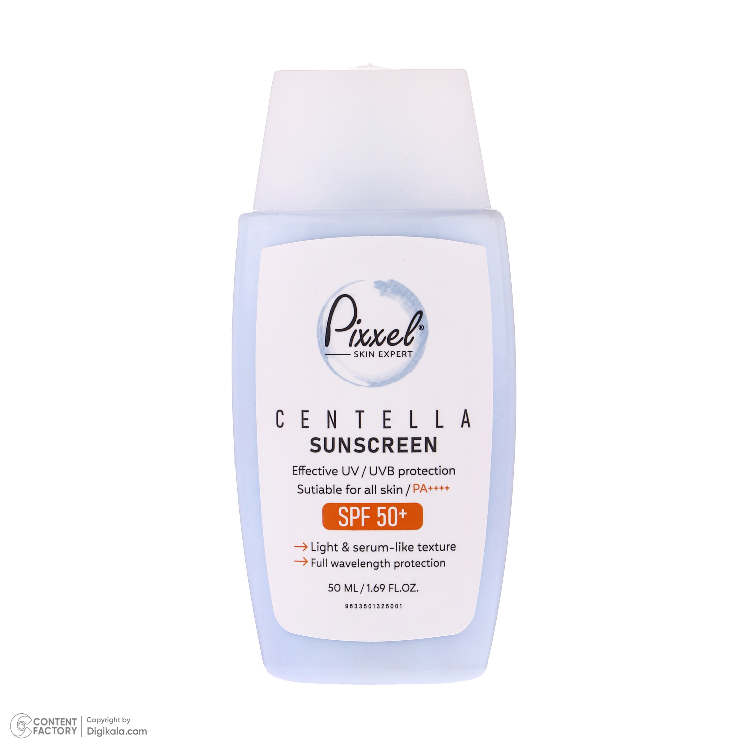 کرم ضد آفتاب بی‌رنگ پیکسل SPF 50 مدل Centella ‌محافظ UVA ،UVB، ++++PA مناسب برای انواع پوست‌ حجم 50 میلی‌لیتر