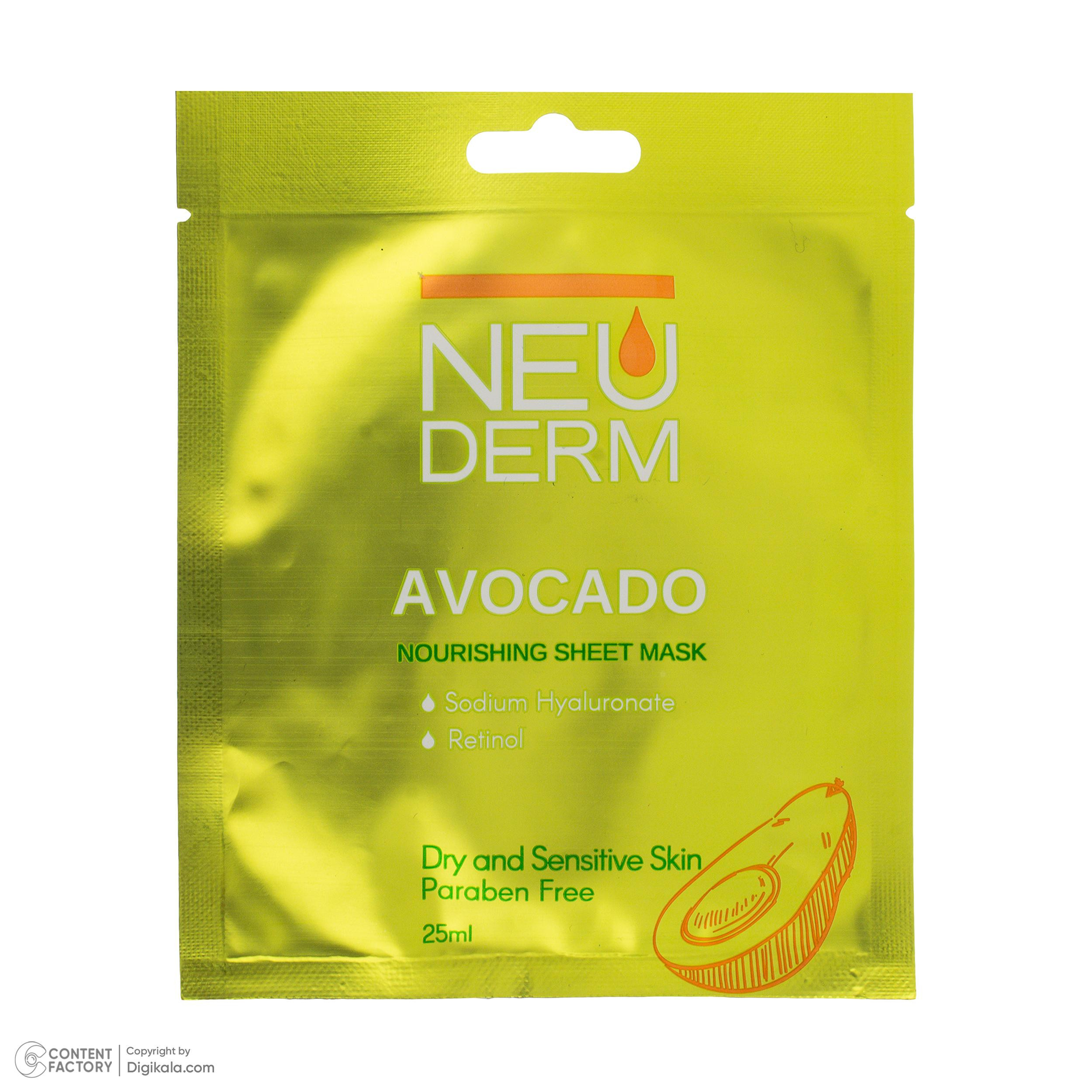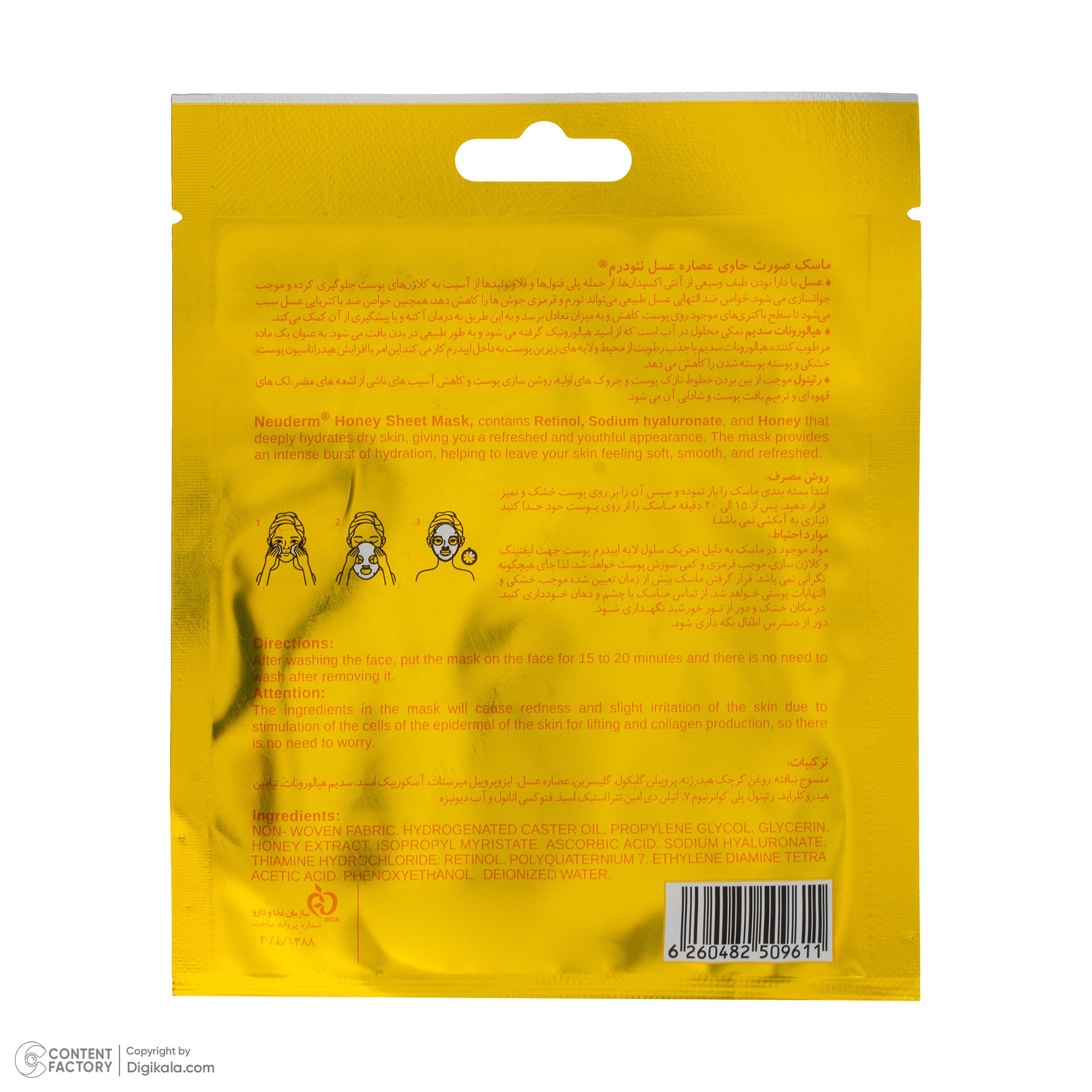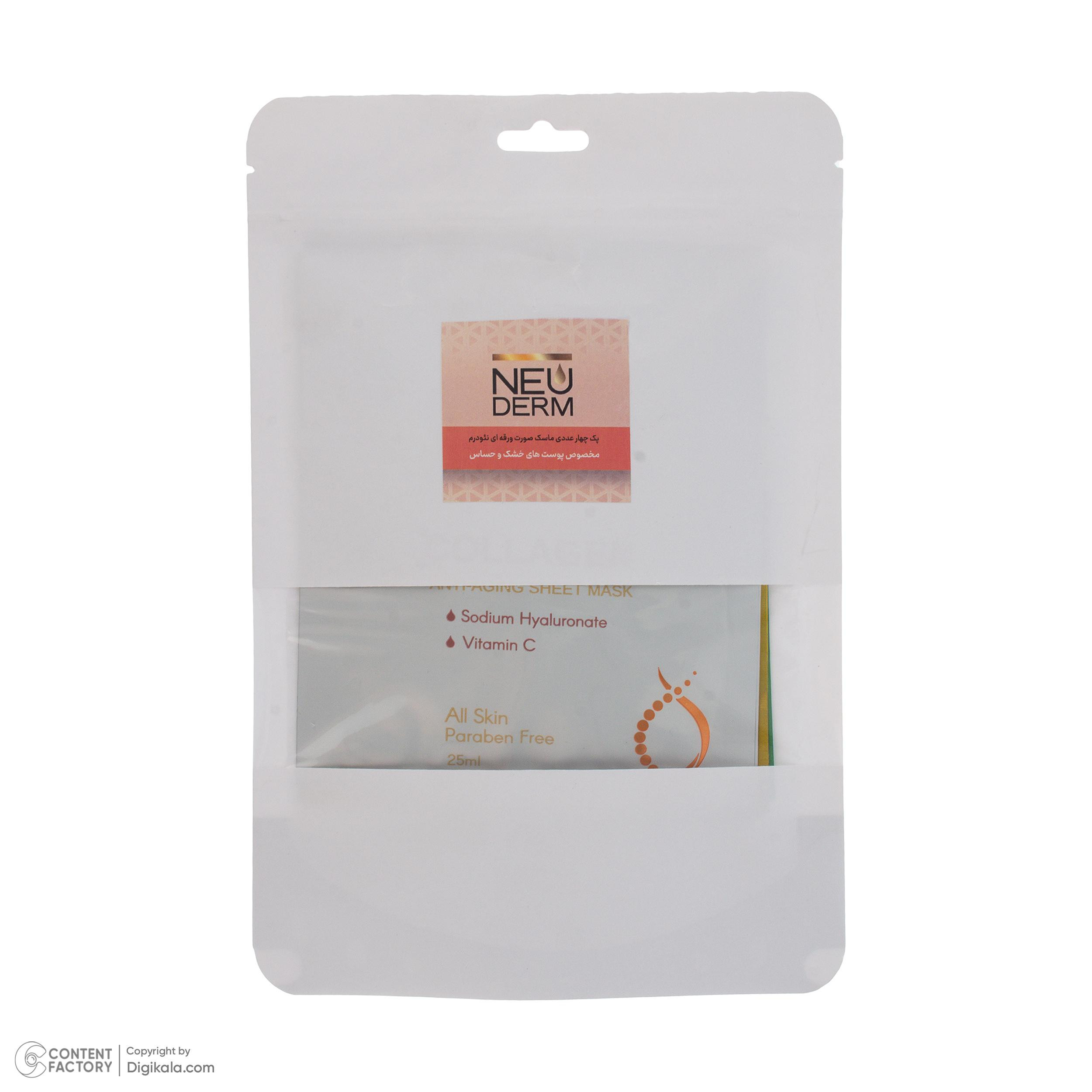 ماسک صورت نئودرم مدل عسل، آلوئه ورا، کلاژن و آووکادو مناسب برای پوست خشک و حساس حجم 25 میلی لیتر بسته 4 عددی