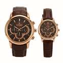 ست ساعت مچی عقربهای کوارتز زنانه و مردانه رومانسون مدل اسپرت لوکس تک موتوره بند چرم قفل فیکس کد R1j