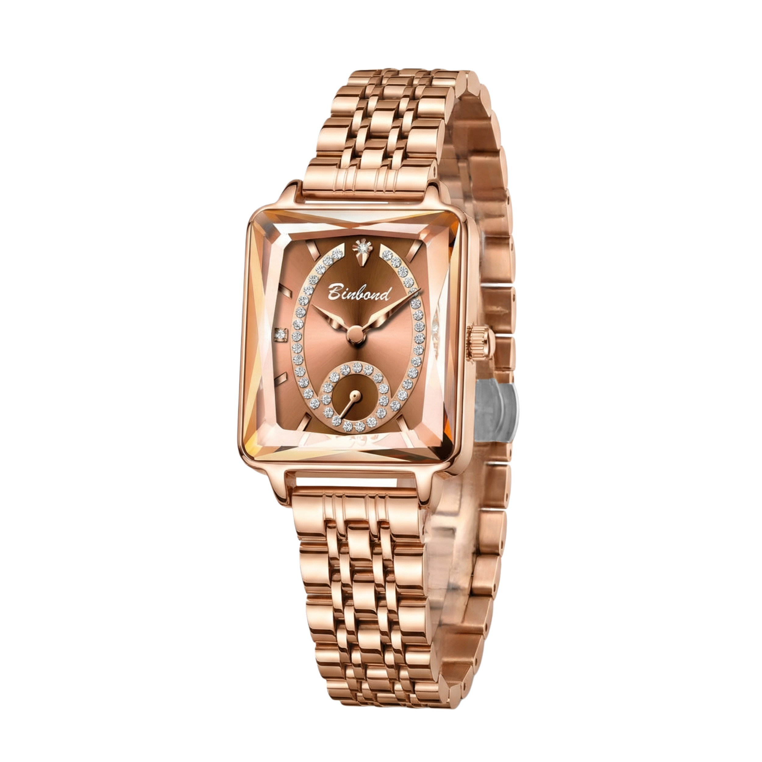 ساعت مچی عقربهای کوارتز زنانه بین باند مدل اسپرت کلاسیک بند استیل زیر ثانیه قفل مخفی کد 001