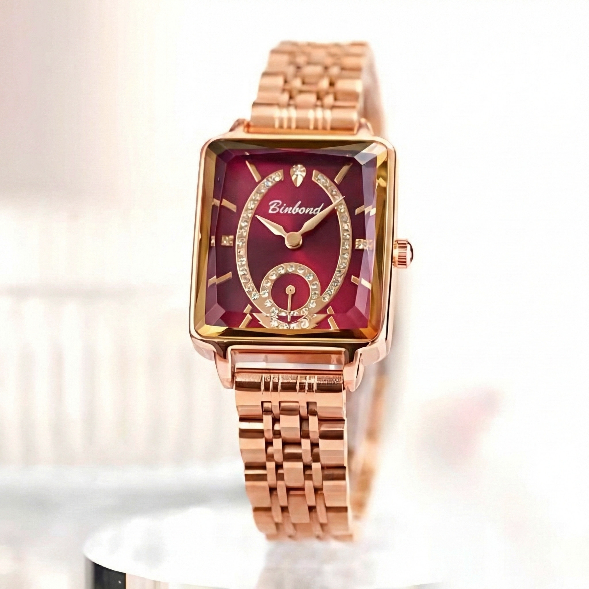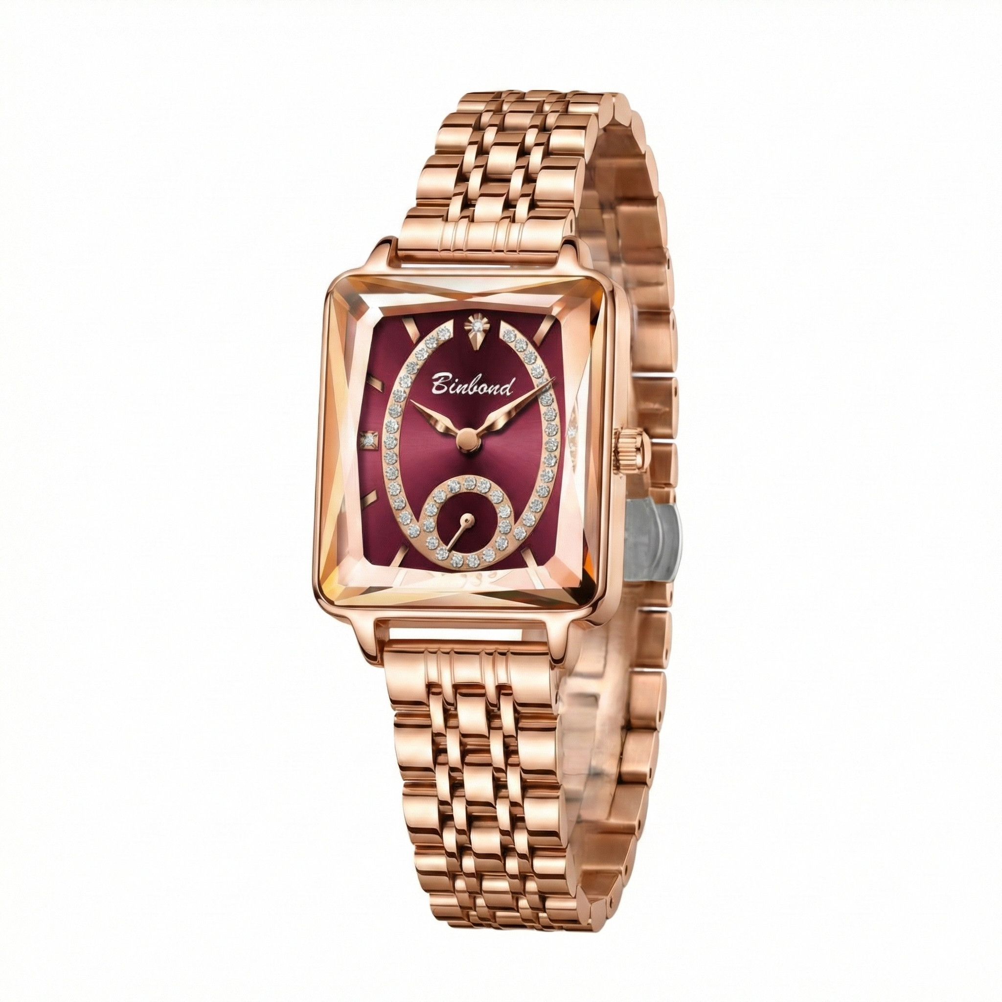 ساعت مچی عقربهای کوارتز زنانه بین باند مدل اسپرت کلاسیک بند استیل زیر ثانیه قفل مخفی کد 002