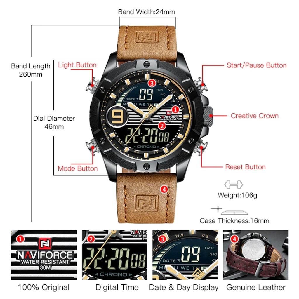 ساعت مچی عقربه‌ای مردانه نیوی فورس مدل NF9146M -B-Y-L.BN