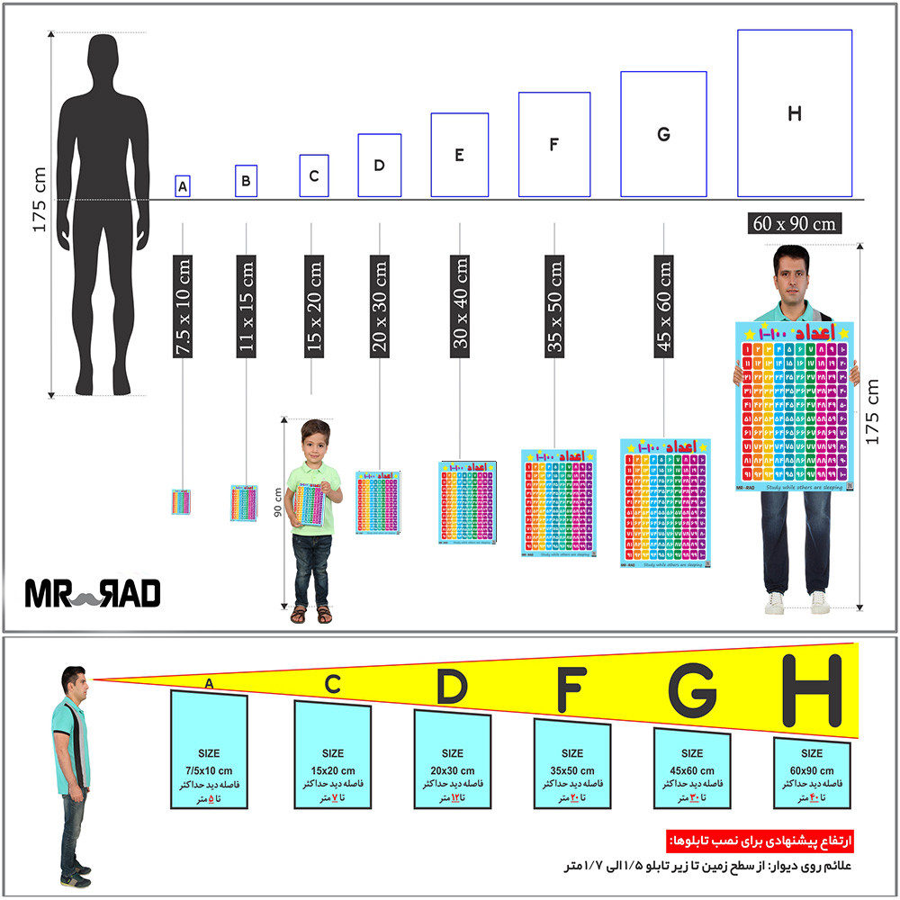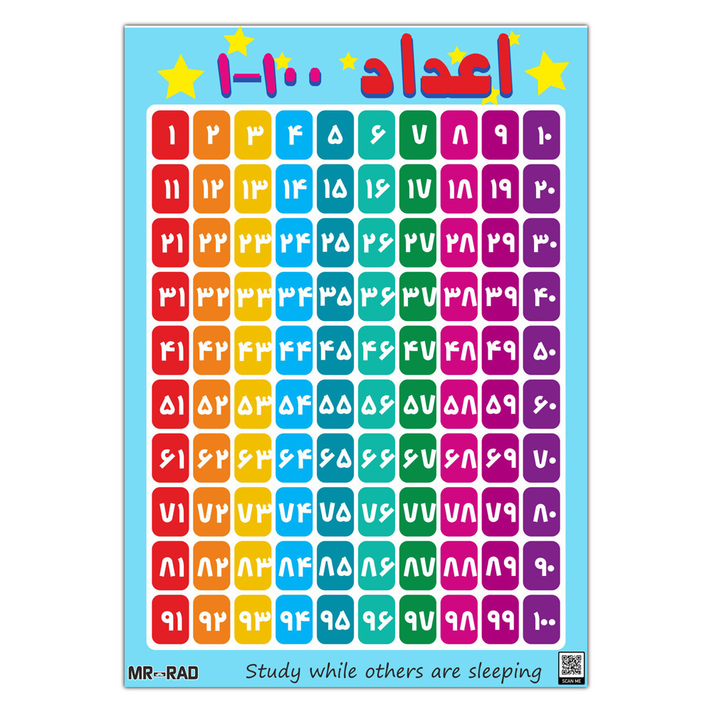 پوستر آموزشی مستر راد طرح اعداد فارسی 1تا100 مدل HSE 04