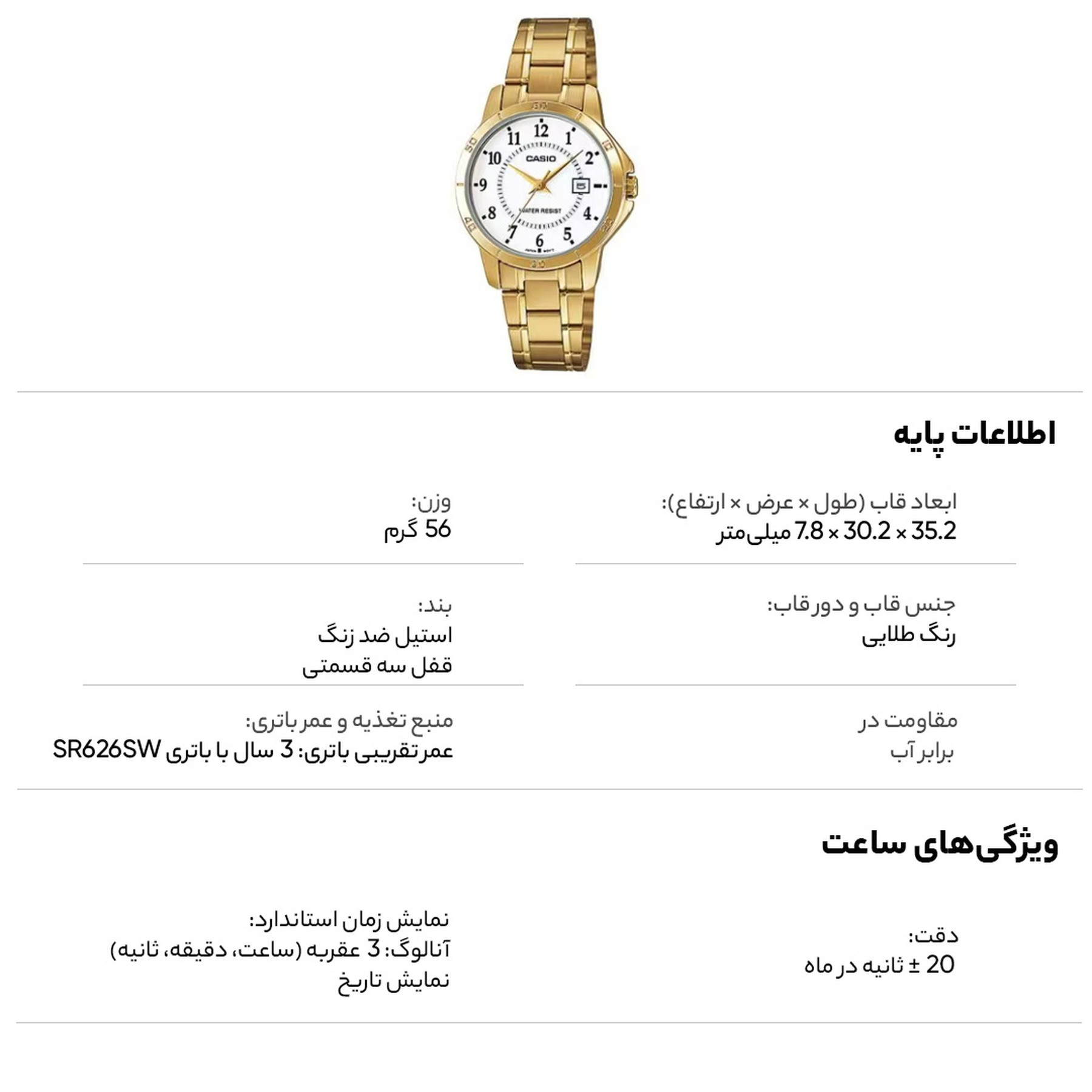 ساعت مچی عقربه ای زنانه کاسیو مدل LTP-V004G-7BUDF