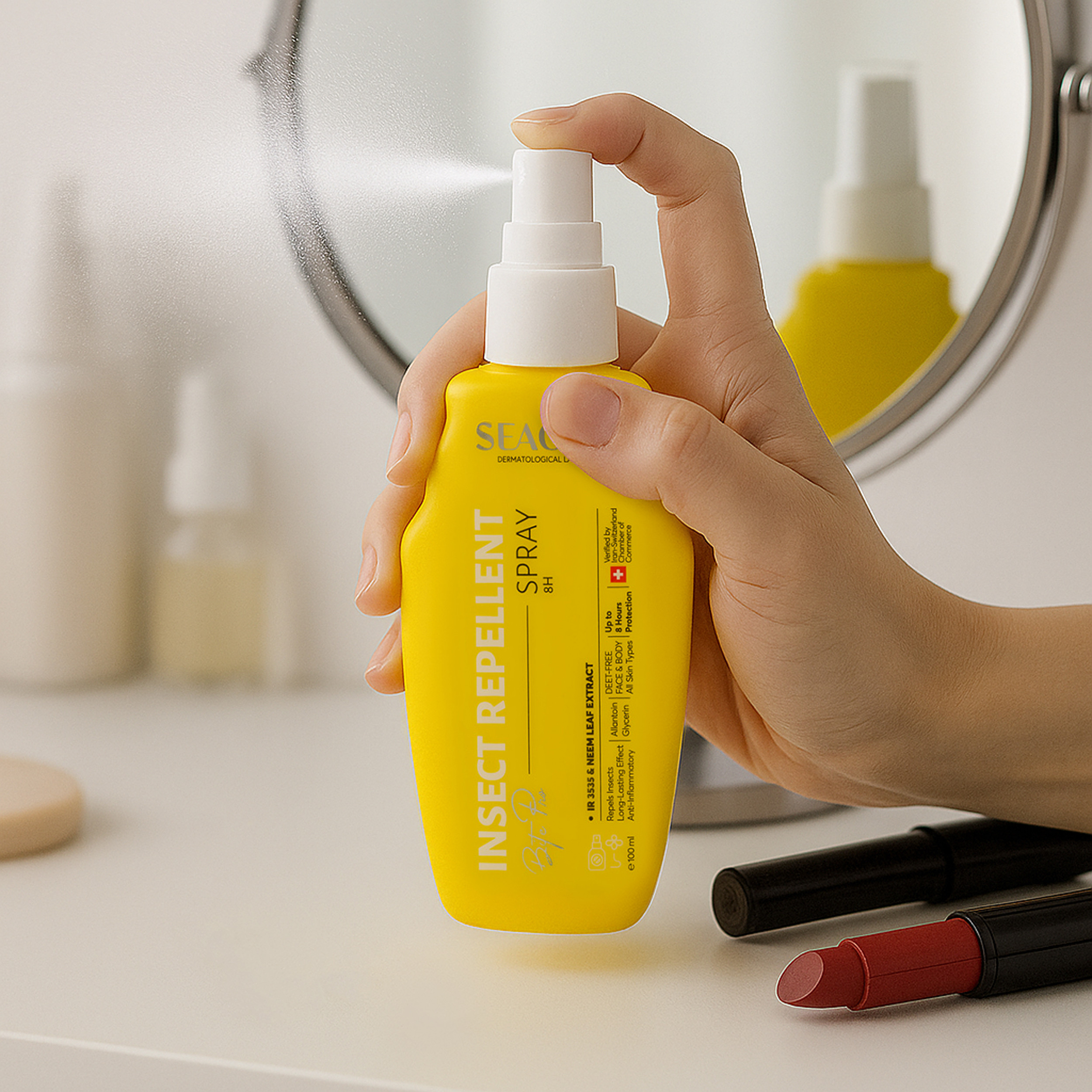 - راهنمای استفادهجهت پیشگیری و محفاظت موثر از صورت و بدن در برابر گزش انواع حشرات مانند پشه، مگس، خرمگس، پشه آنوفل، شپش، ساس، كك، كنه، انواع مورچه و ... به مدت 8 ساعت پس از هر بار مصرف دوباره از اسپری استفاده کنید.